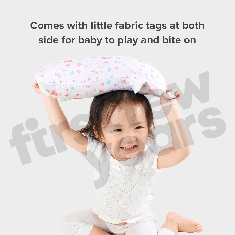 Cubble Comfy Pillow is a hugging pillow with fabric tags at both side for baby to pull and bite on. The pillow is ideal as a sleep soother, baby sleeptime and playtime pillow and even a sleep positioner.