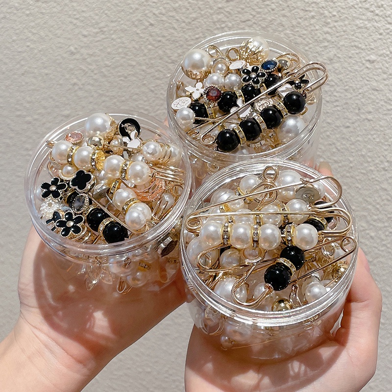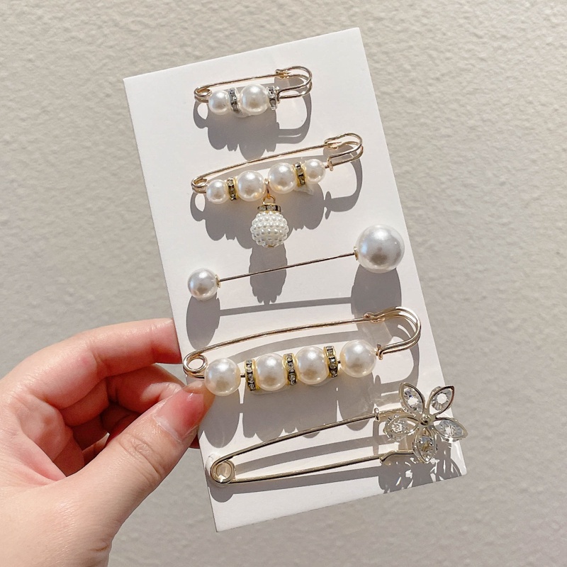 Fashion Alloy Pearl Brooches Pins Set Flower Bowknot Adjustment Brooch Clothes Pin Women Jewelry Accessories Gift