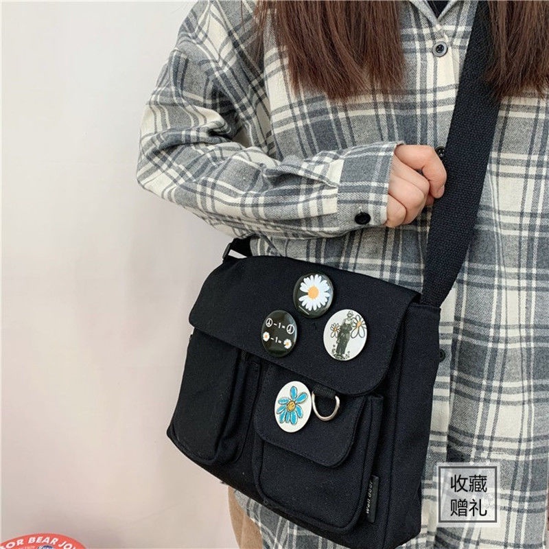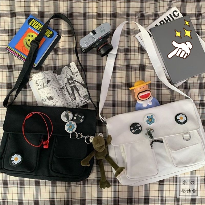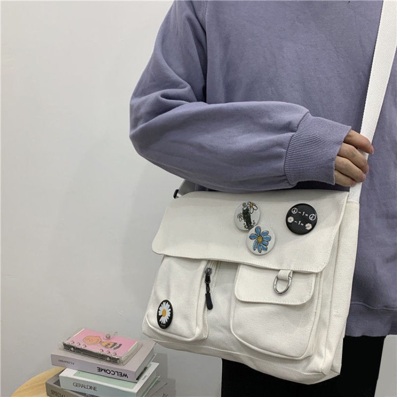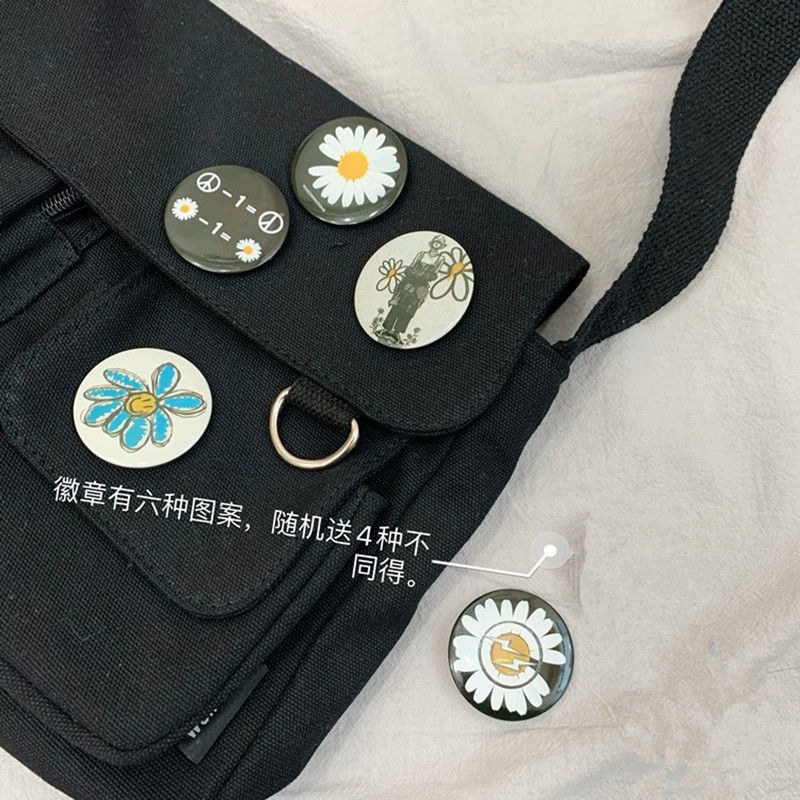 Canvas Bag Female Student Korean Version of Ins Messenger Bag New Daisy Cute Joker Shoulder Large Capacity Bag