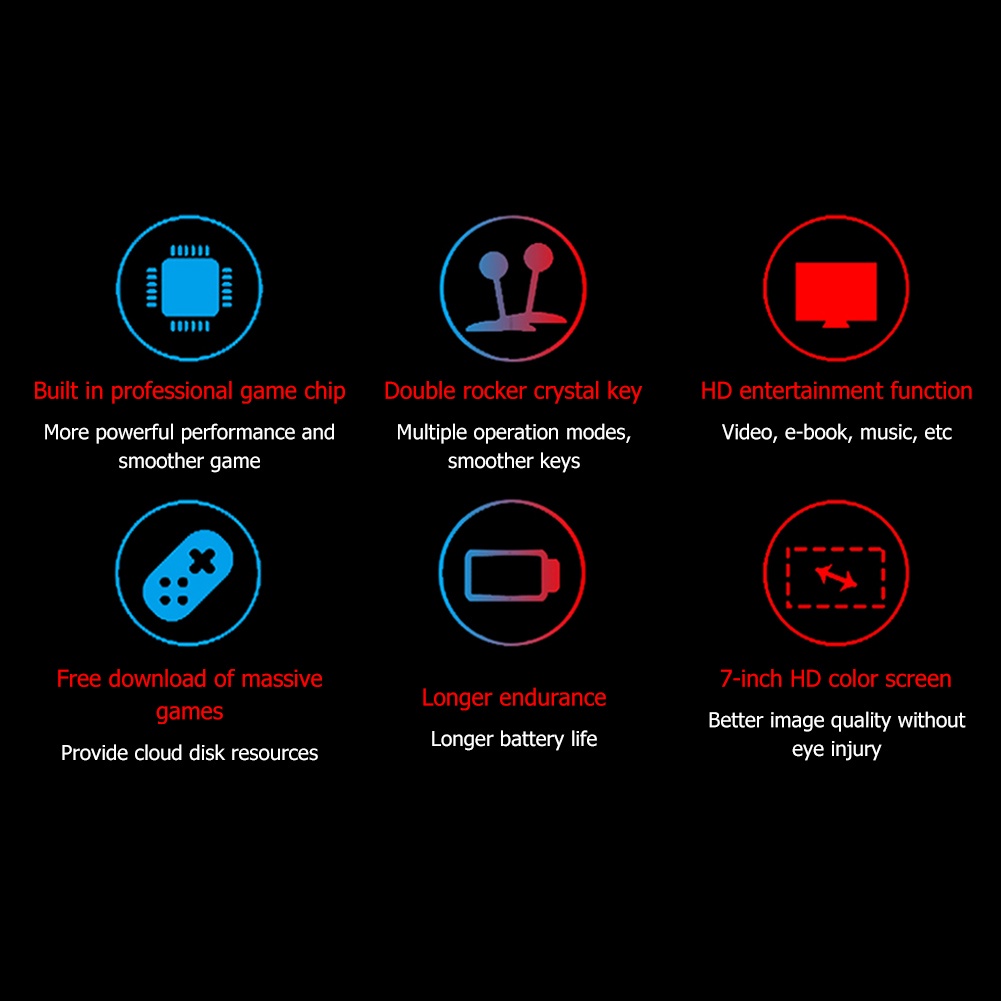 Free 10000+ Games: Built in 10000+ classic games, all original and no repeat. Can download games with related format. Support Arcade Games (PS,MD,NES) / Famicom (FC, SFC) / Gameboy (GBA, GB) / Megadrive (SMD, BIN).5.1/7.0 inch Large Screen optional : Large full-color TFT LCD screen, double protection, no eye damage for a long time. It has anti-scratch and anti-drop functions, bringing exciting gaming experience and better eye protection.?