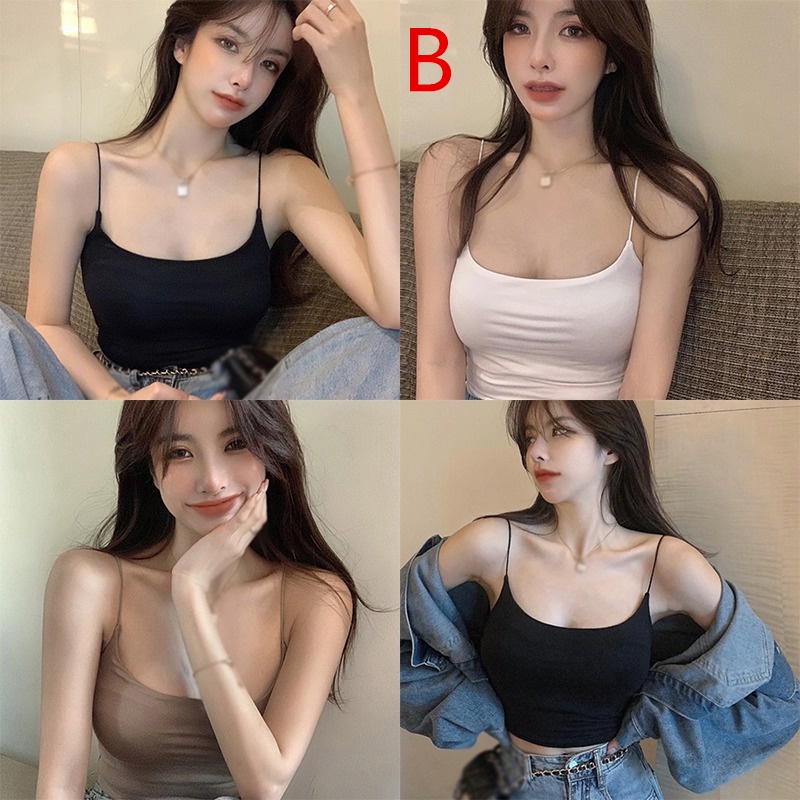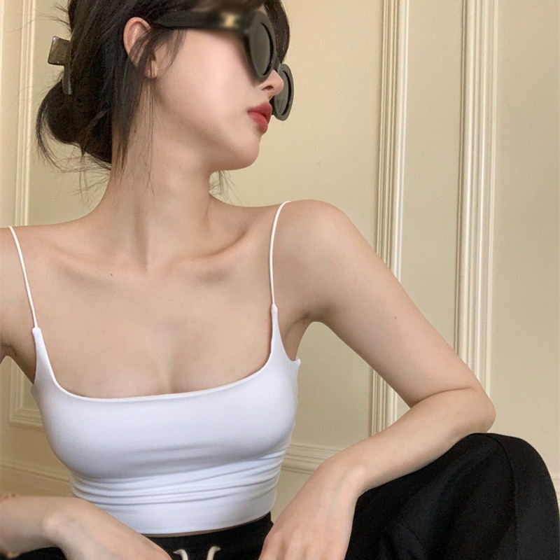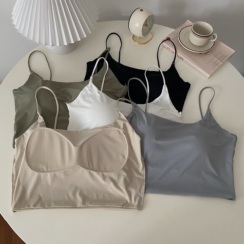 sleeveless top Women Ice Silk Solid Color Chest Pad Camisole Korean Tank Top