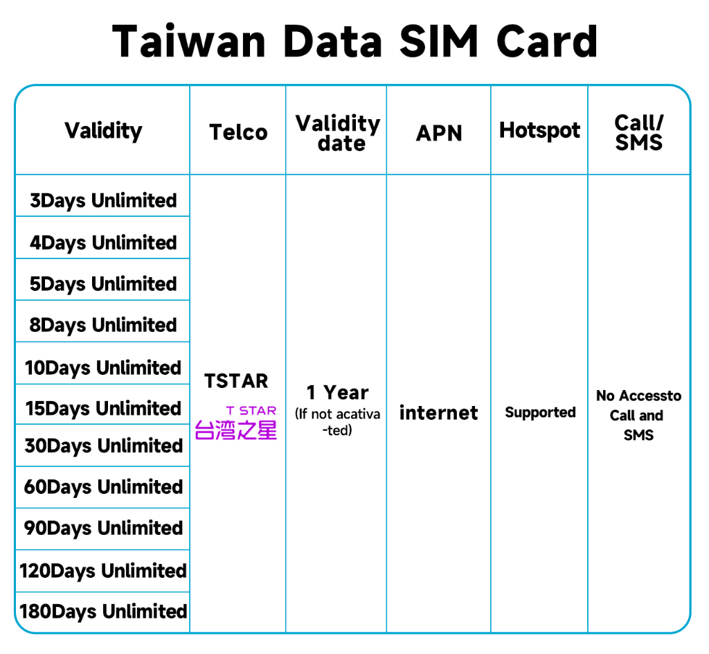 Taiwan Prepaid Sim Card,4G data sim card,unlimited Internet Data Plans,Go Abroad sim data card