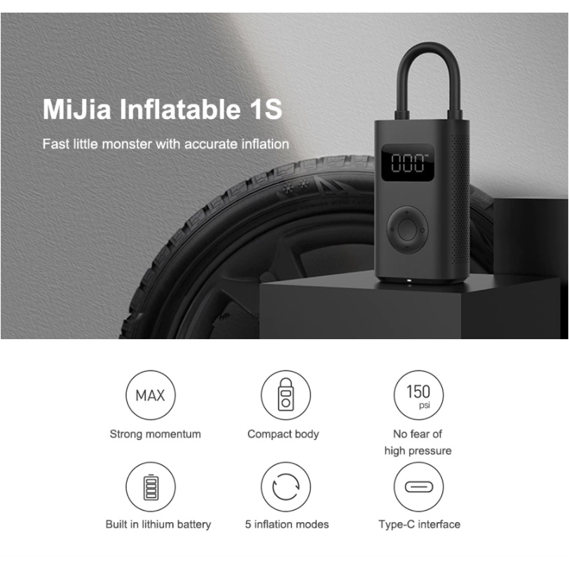Xiaomi Mijia Electric Inflator 1S Car Air Compressor Electric Pump with Five Inflation Modes/150psi High Pressure/LED Light/Type-C Charging Portable Auto Tire Inflator for Car/Ball/Bicycle/Motorbike