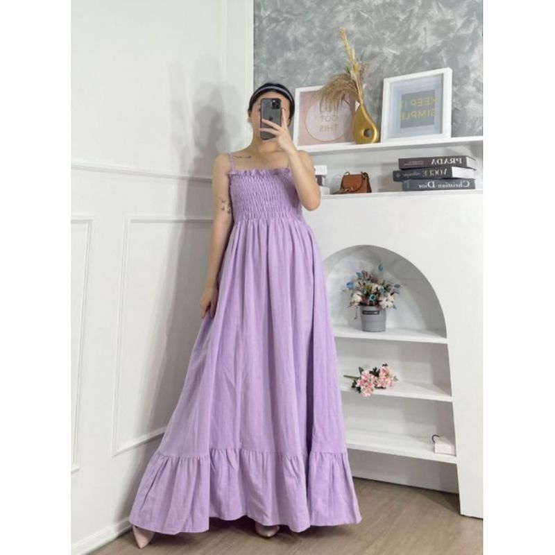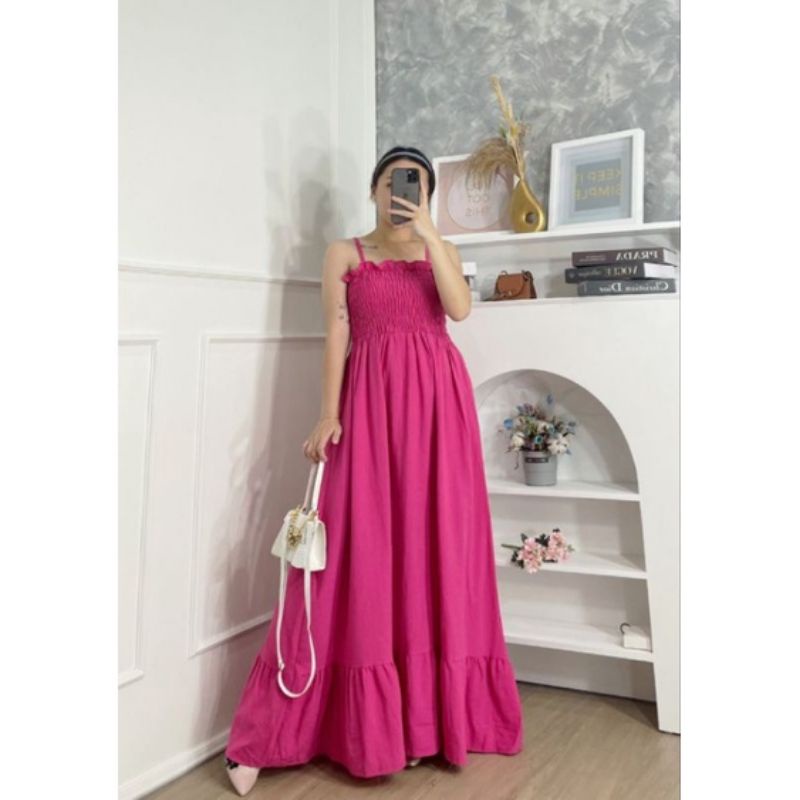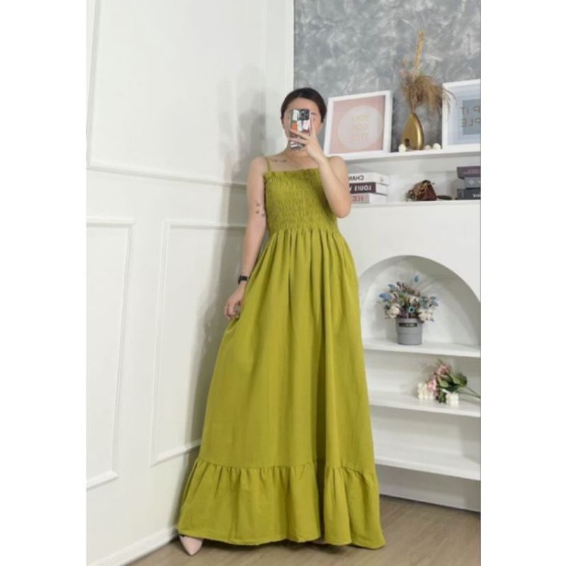 Plain Korean Dress/ Strap Ruffle Dress/Rayon Grade A Long Smoke Dress