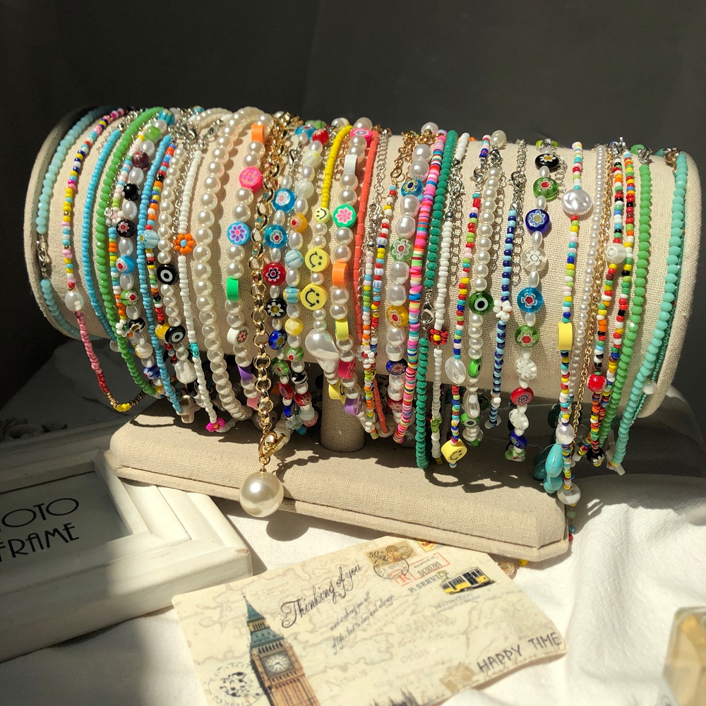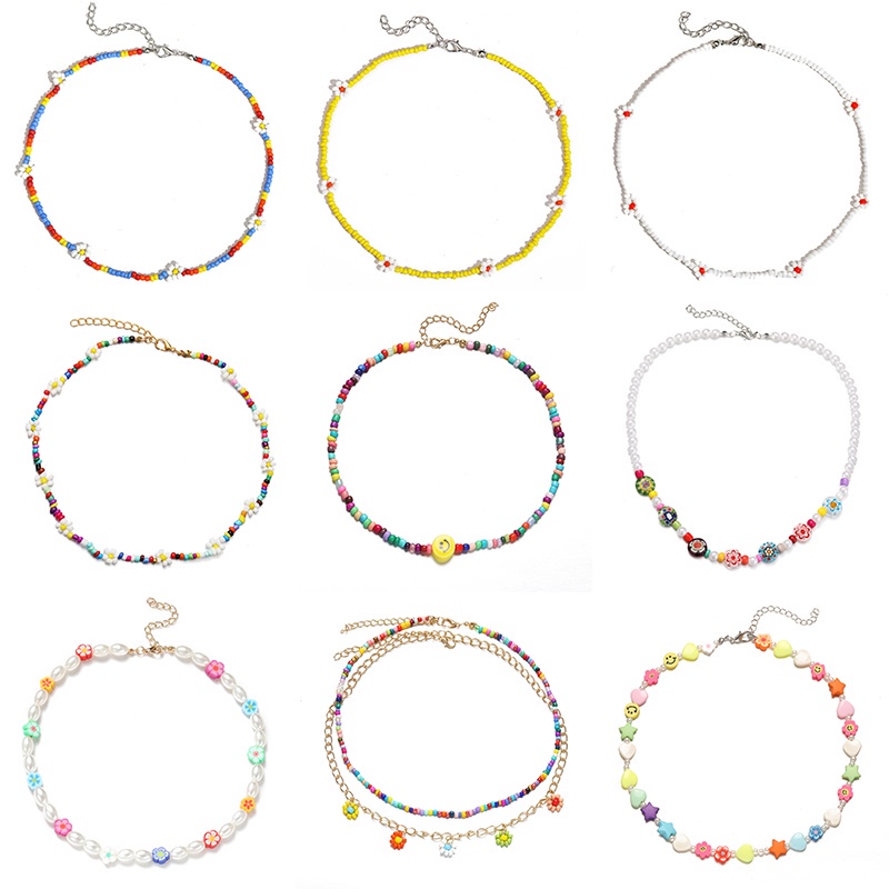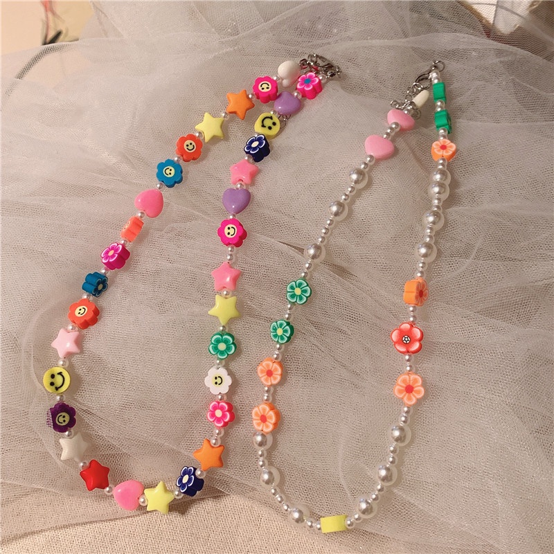 Colorful Pearl Beads Necklace Flower Star Smiley Choker Women Jewelry Accessories
