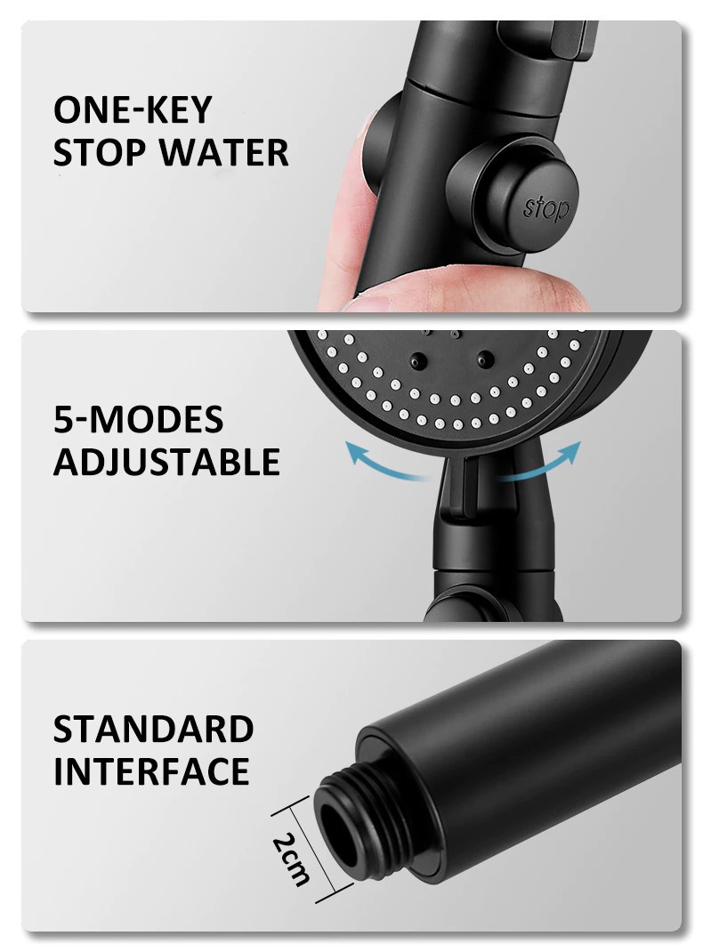 1. High pressure: Compared with ordinary showers, our product adopts unique internal structure and air intake technology, which can provide strong water flow even under low water pressure.