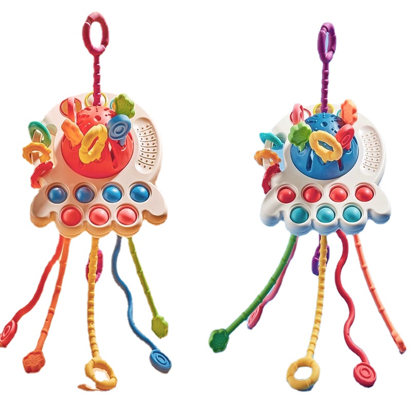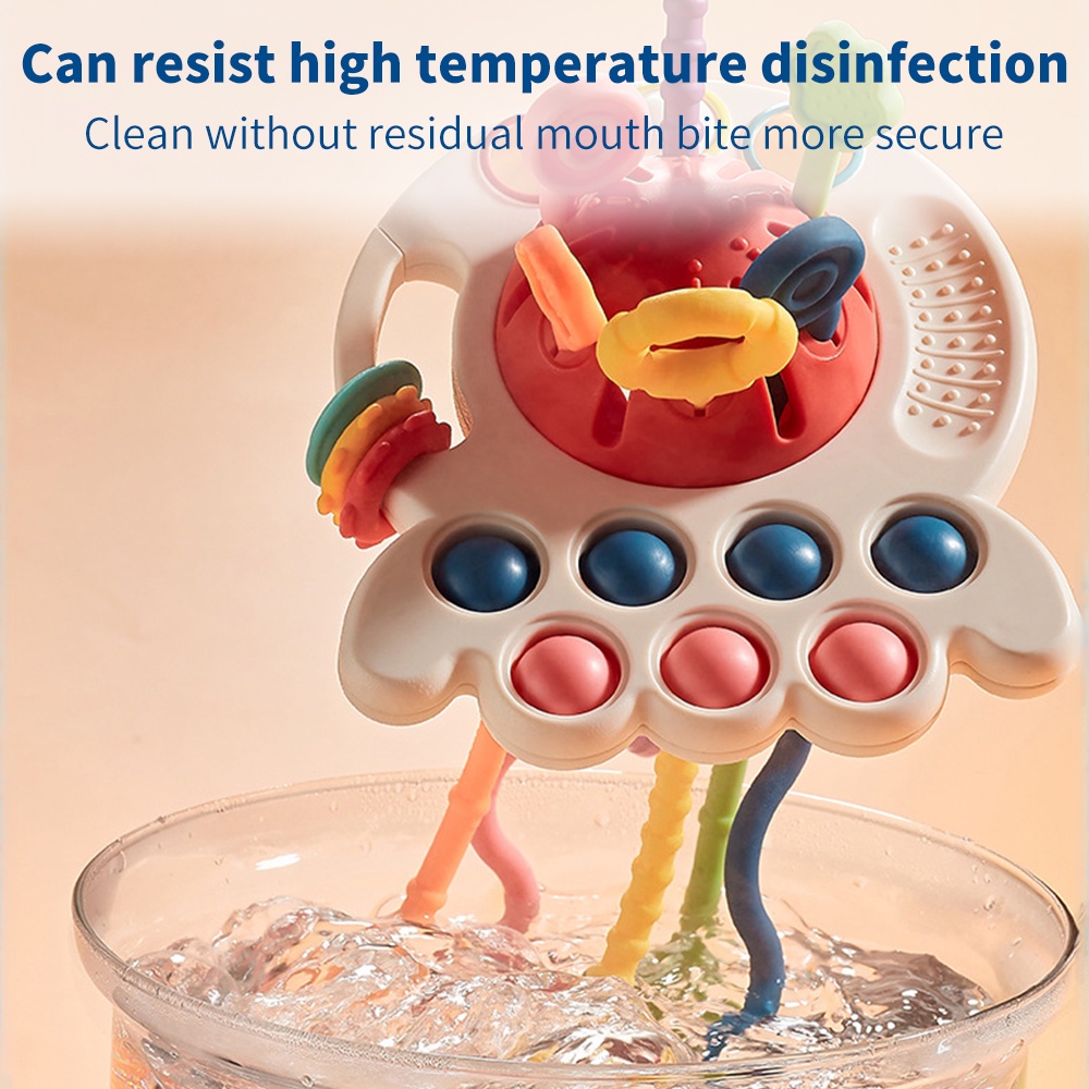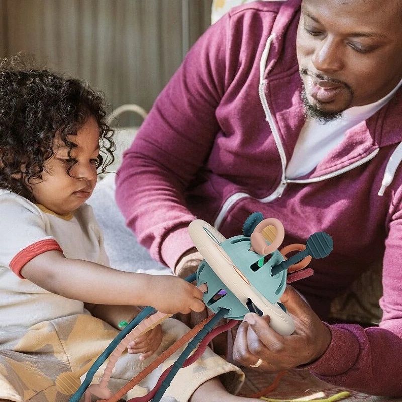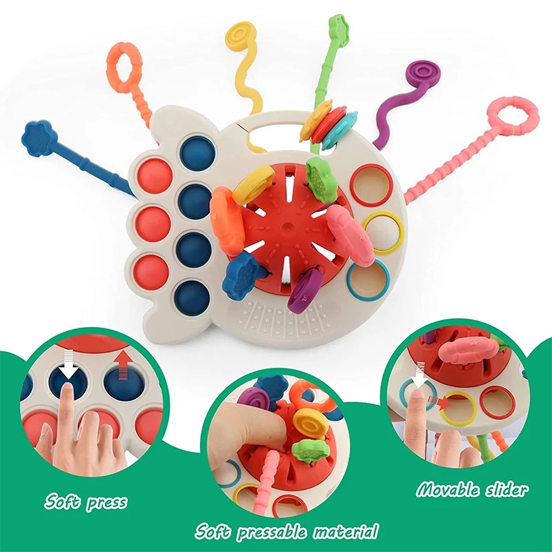 3 In 1 Baby Montessori Pull String Sensory Toys 0-3Y Silicone Teething Activity Toy for Toddler Finger Grasp Training