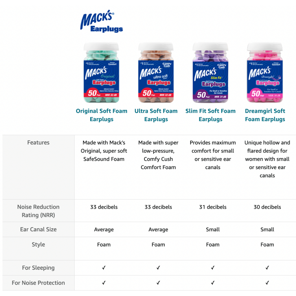 Mack’s is the #1 doctor recommended brand of foam earplugs to protect hearing and to get a good night’s sleep when sleeping with a snoring spouse.