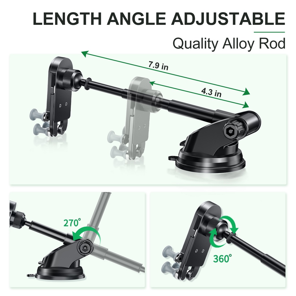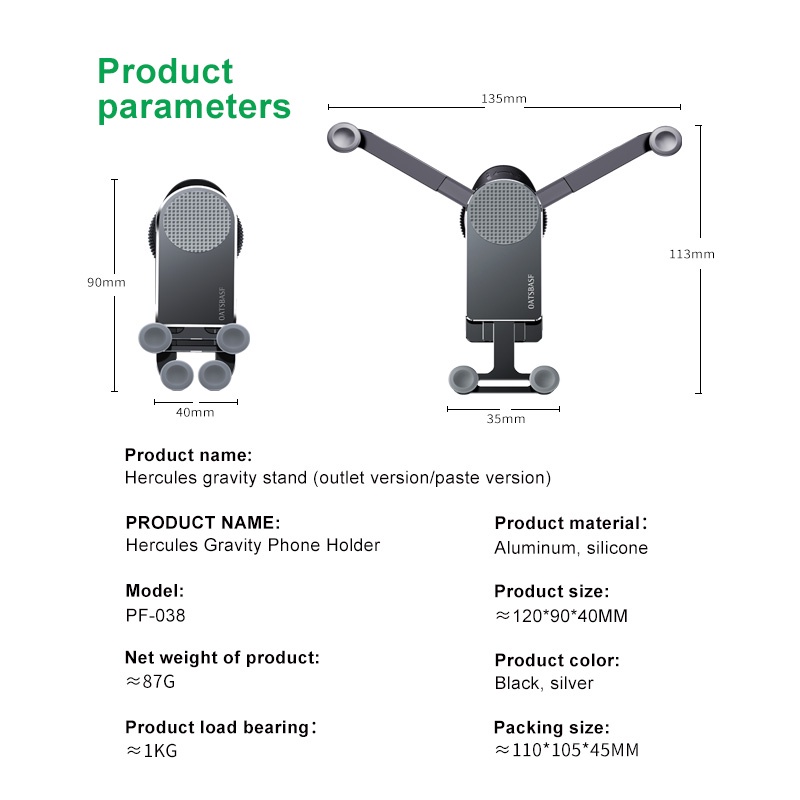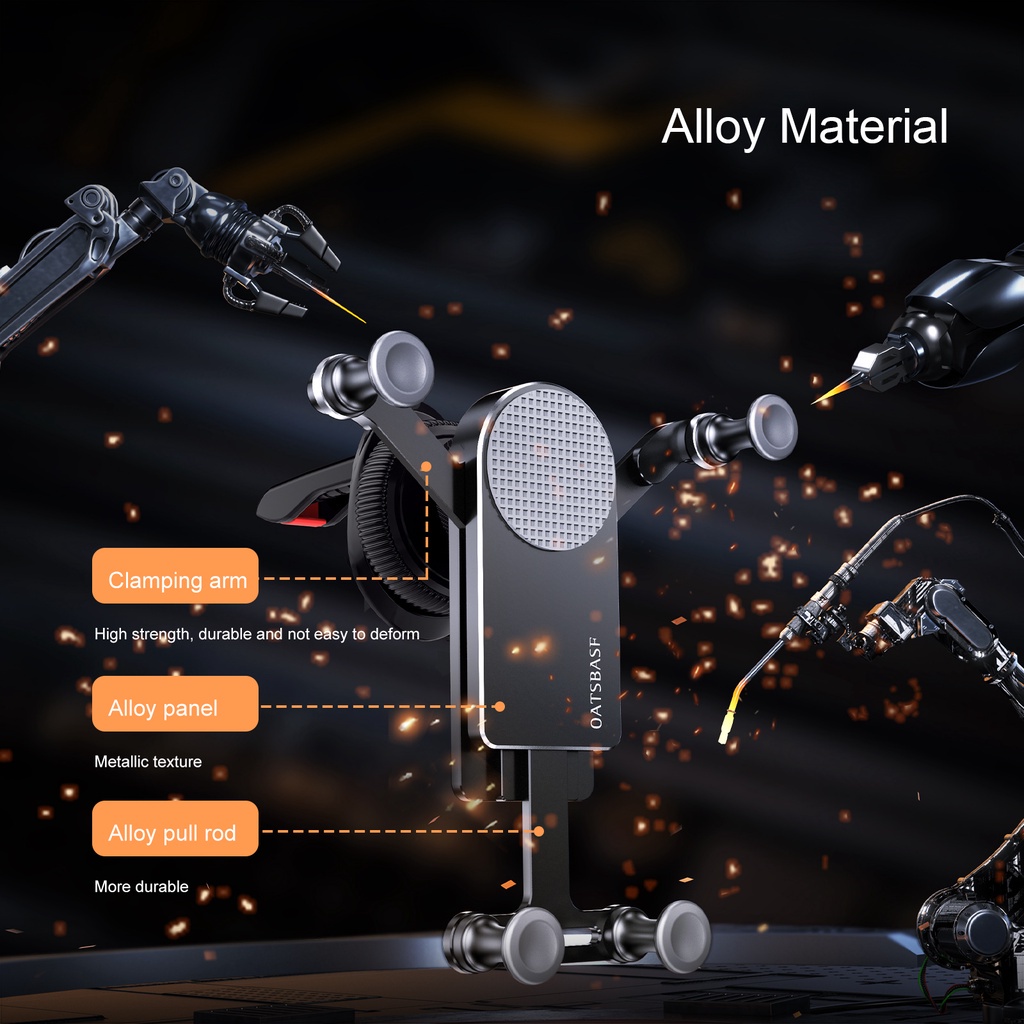 【ALLOY BUILD & TRANSFORMATION 】car phone holder is made of aviation aluminum, with CNC anodizing and vacuum plating technology, will not age or break. When your phone is placed, the mount will automatically and firmly lock your phone using gravity. When removing your phone, automatically restore the compact form , not blocking the air vents not abrupt.