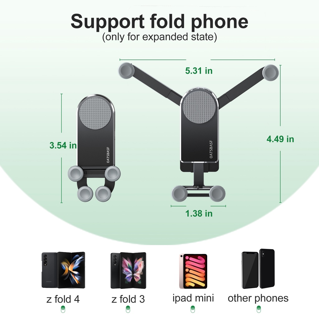 【FOLDING PHONE DEDICATED】Designed for foldable dual screen smartphone, adapts to round, horizontal and vertical vents, compatible with 6.1-6.9 inch large screen phones and iPad below 8 inches.