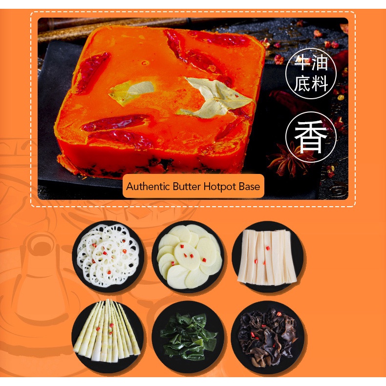 • Vegetable pack contains: Potato slices, kelp, bamboo shoots, black fungus, lotus roots