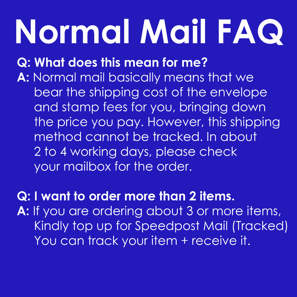 Take note that Speedpost usually delivers your order to your mailbox. Check there if you do not receive your order at your doorstep. Do check your mailbox if you fail to receive your order.