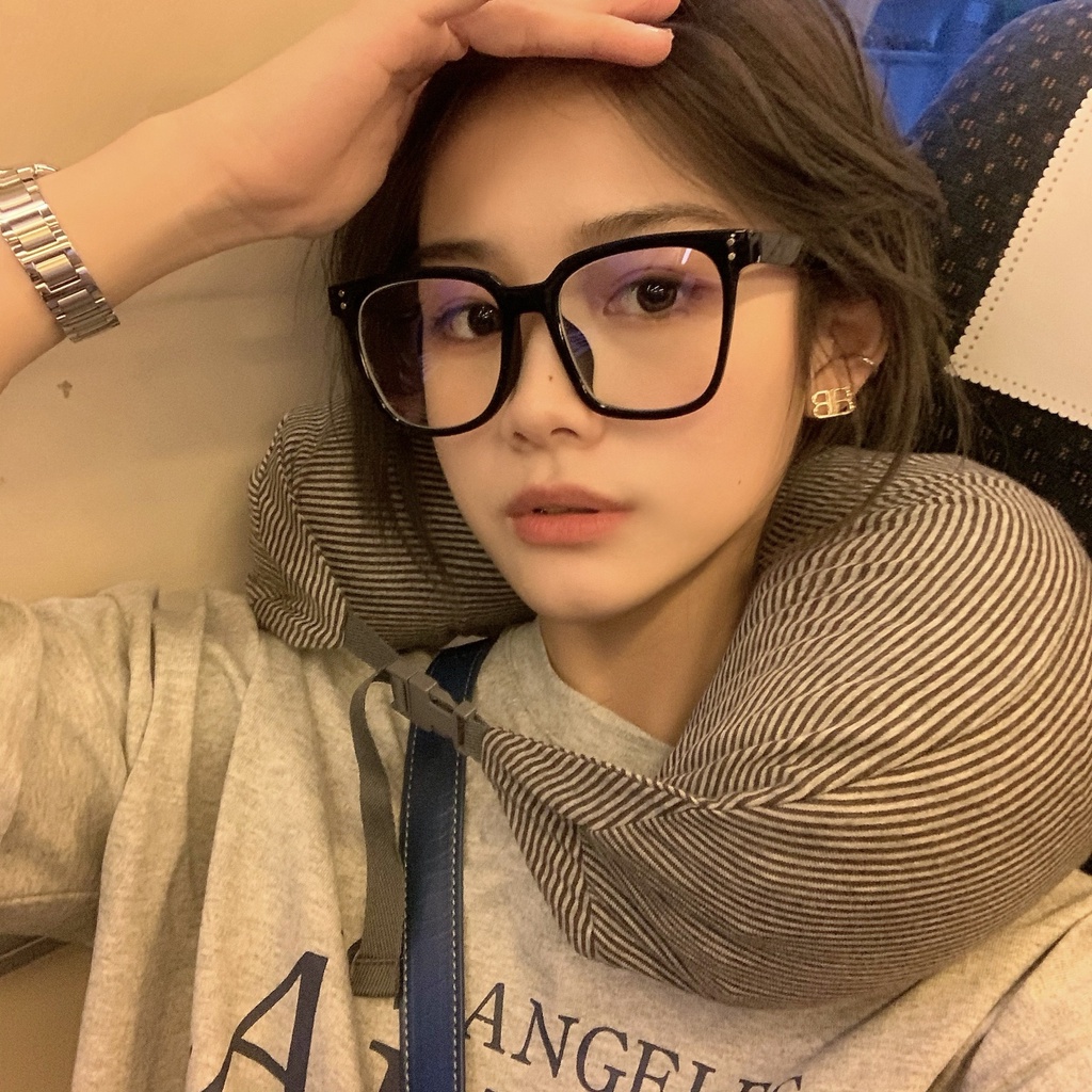 Influencer Black Frame Glasses Female Trendy Big Face Slimmer Look Ultra-Light tr90 Square Large