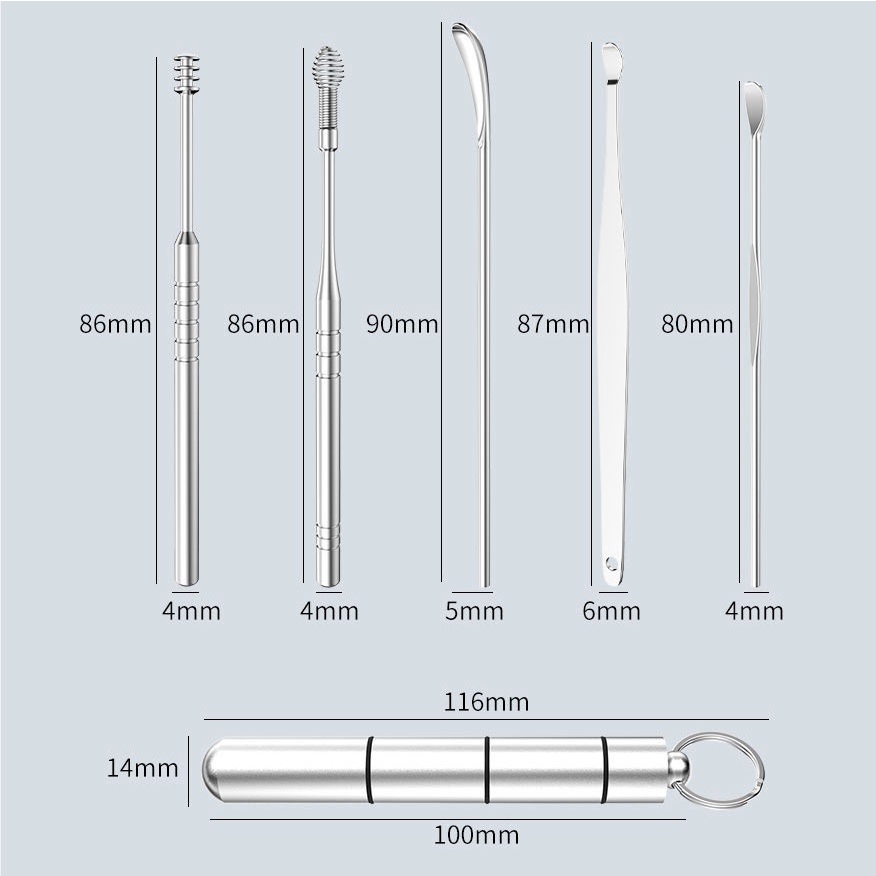 6Pcs/set Ear Wax Pickers Stainless Steel Earpick Wax Remover Ear Cleaner Spoon