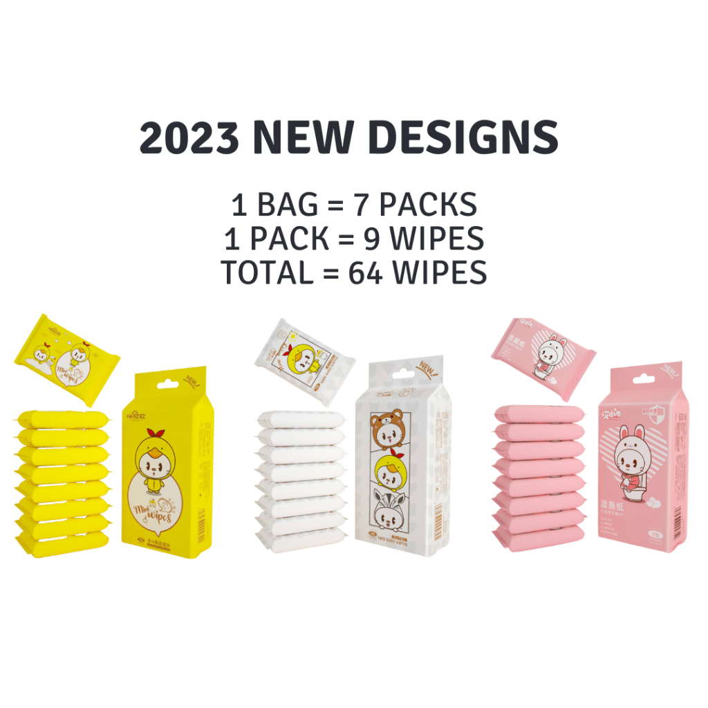 ✅ All Designs come in 64 Pcs wet wipes in 8 or 9 packs (depends on design). See below :