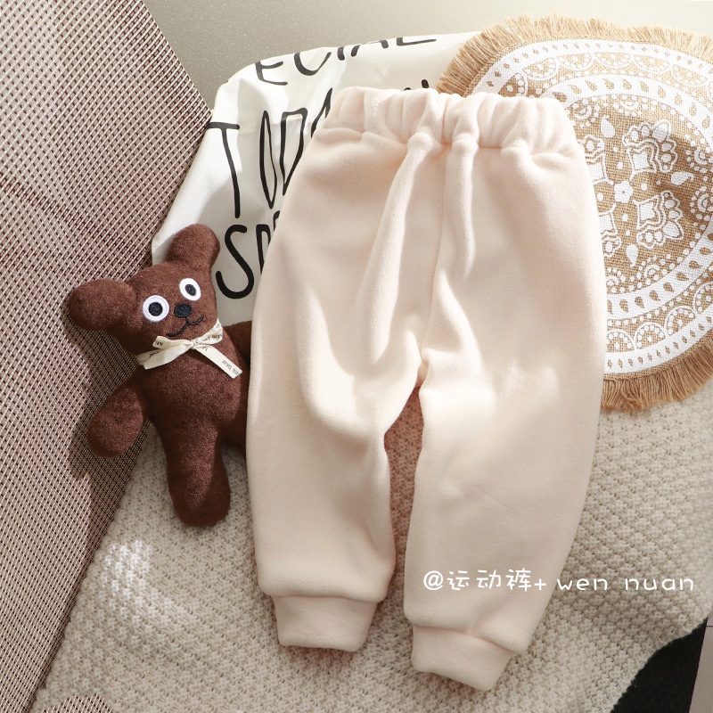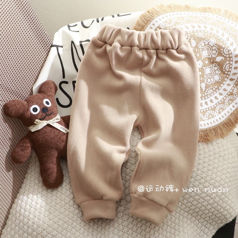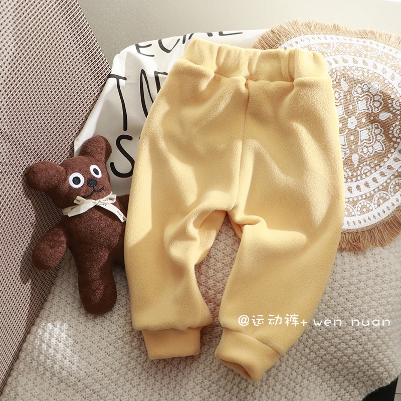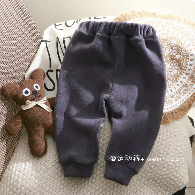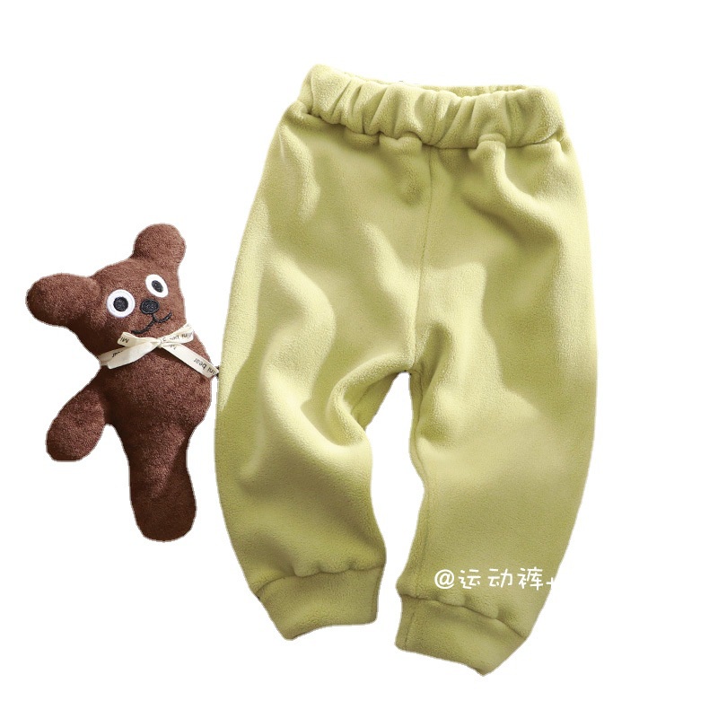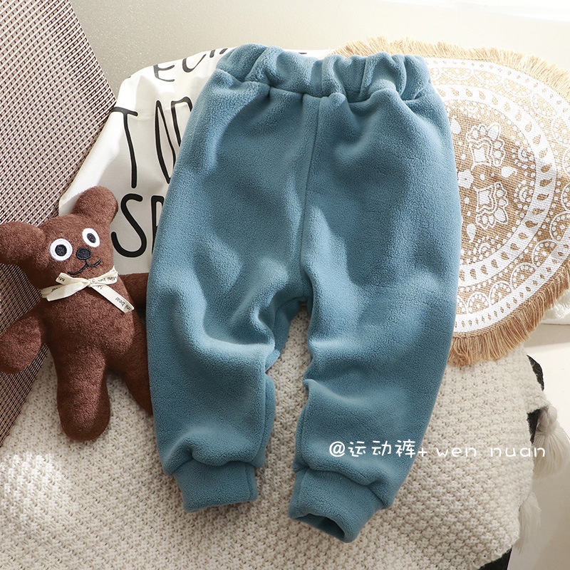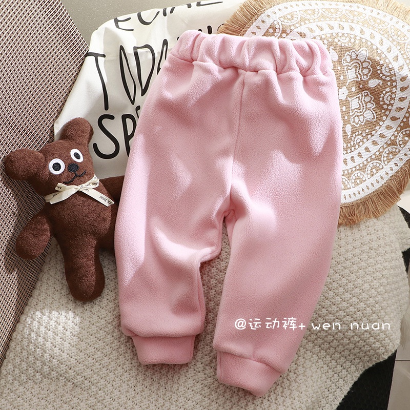 [ML] Ready Stock 73-130CM Children Winter Fleece Lining Casual Pants Boys Girls Candy Color Middle Small Warm Thick Polar Children's Clothing