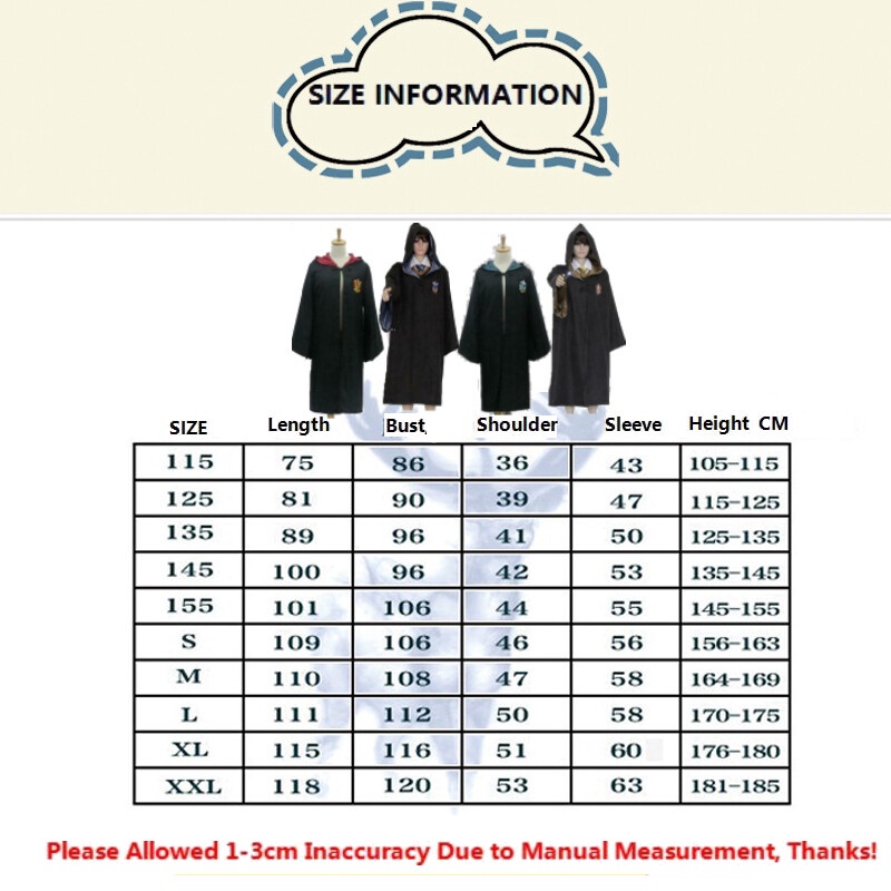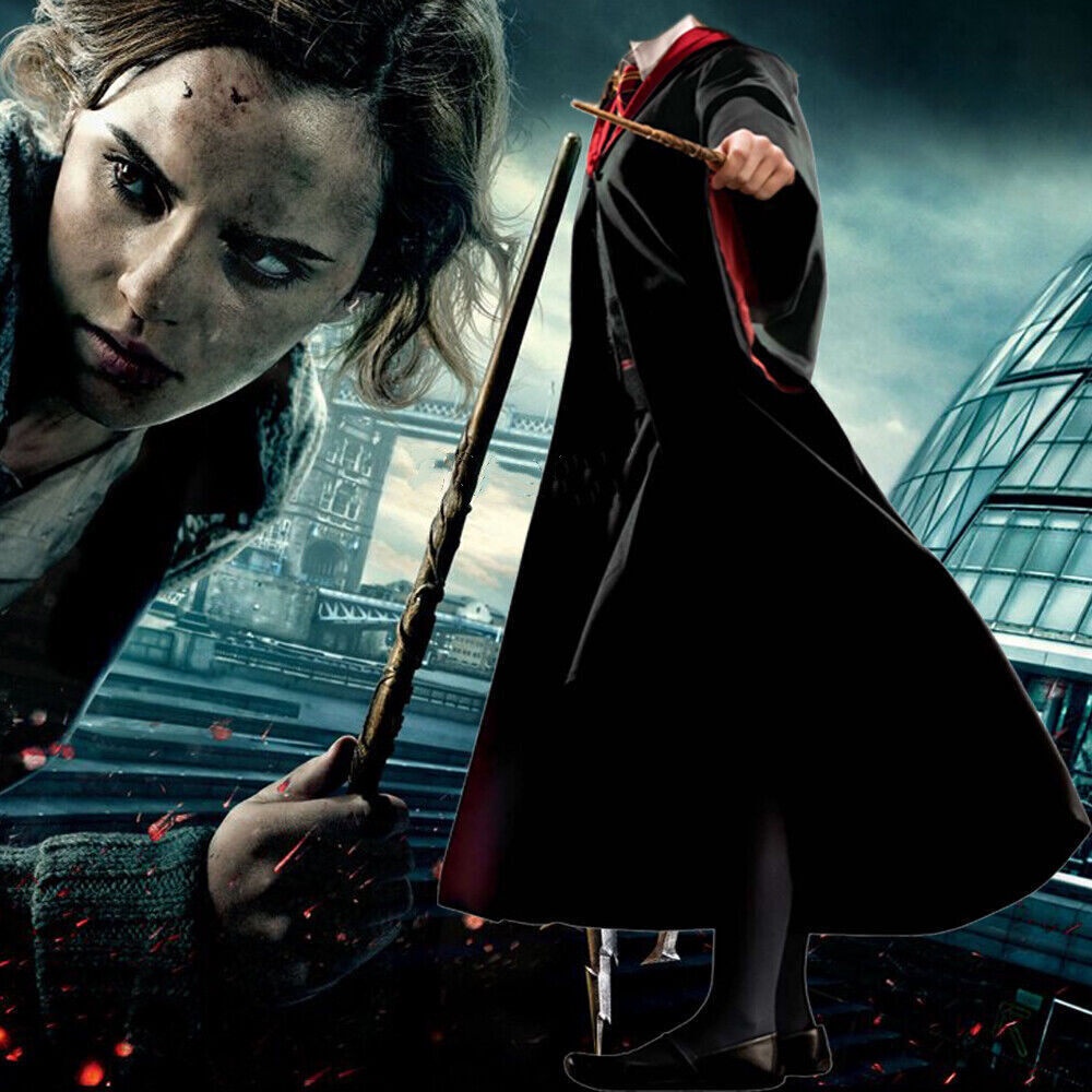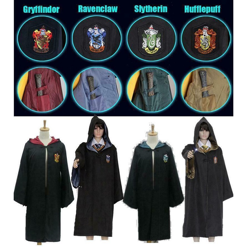 7PCS Harry Potter Costume Robe Cape Cloak Halloween Adult Kids Cosplay Magic With Tie Scarf Wand Glasses Cape Hermione Gryffindor Slytherin Hufflepuff Ravenclaw Suit Cosplay Hallow