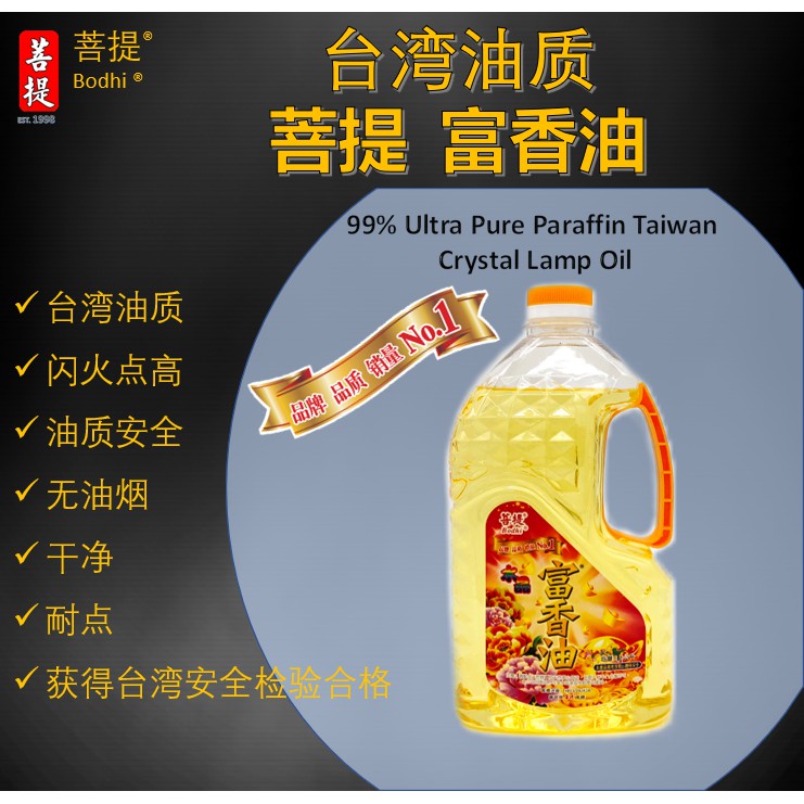 Bodhi & Tian Ran brand uses high-quality Taiwan paraffin oil which has passed Taiwan's safety inspection. It is safe to use as it has High Flash Point. It does not emit black smoke. Overall a cleaner oil to use as compared to ordinary chemical essence lighting oil.