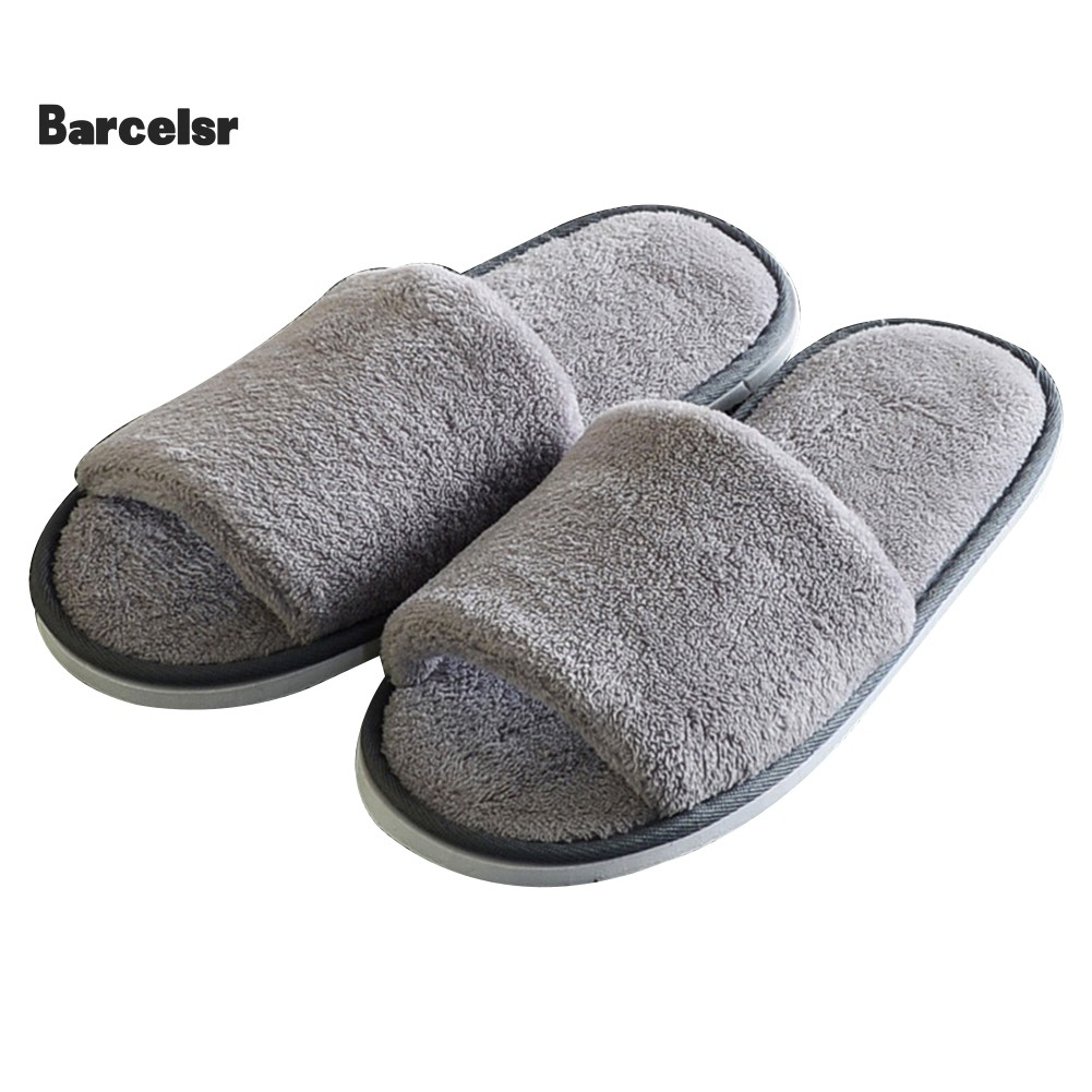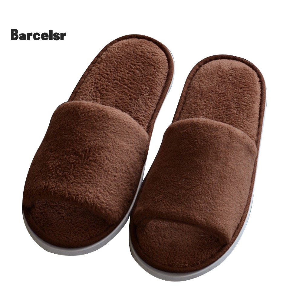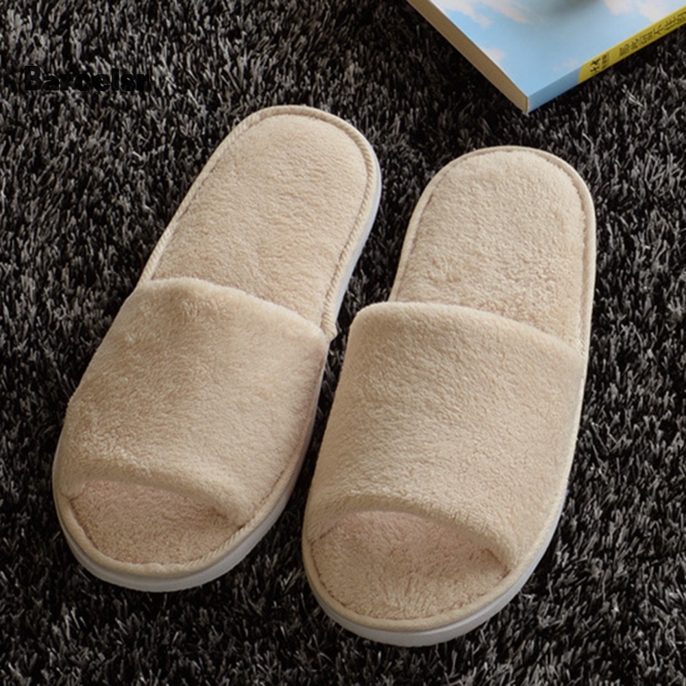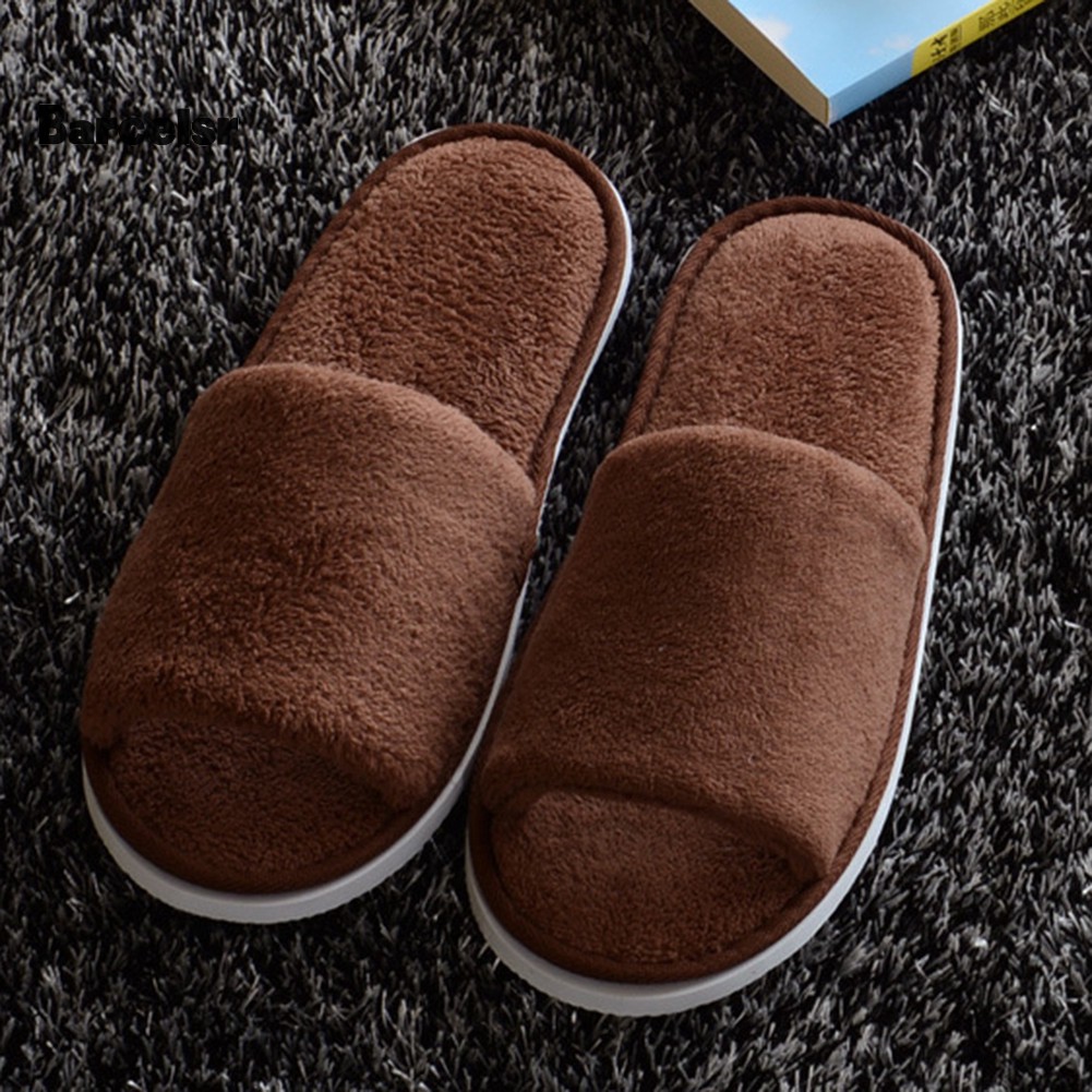 [Clearance Sale] Unisex Solid Color Coral Fleece Warm Open Toe Home Indoor Shoes Hotel Slippers