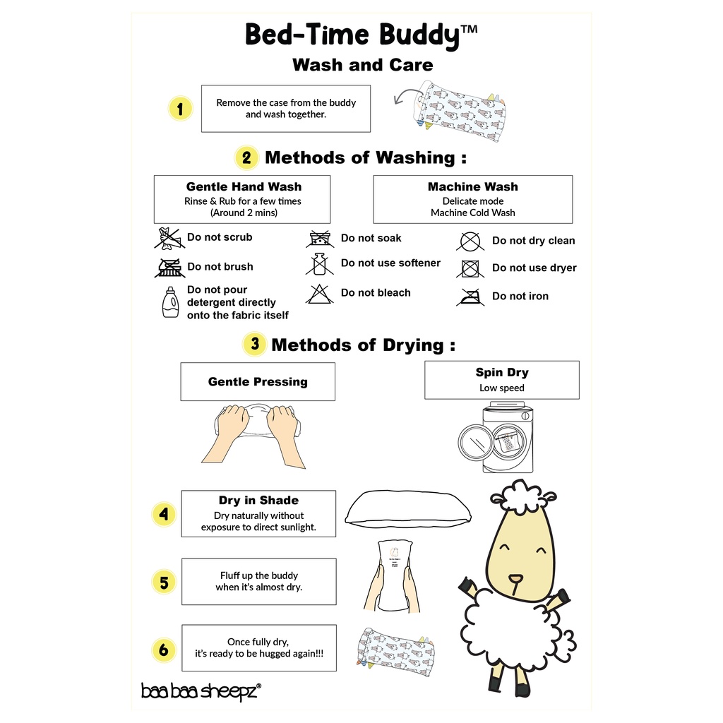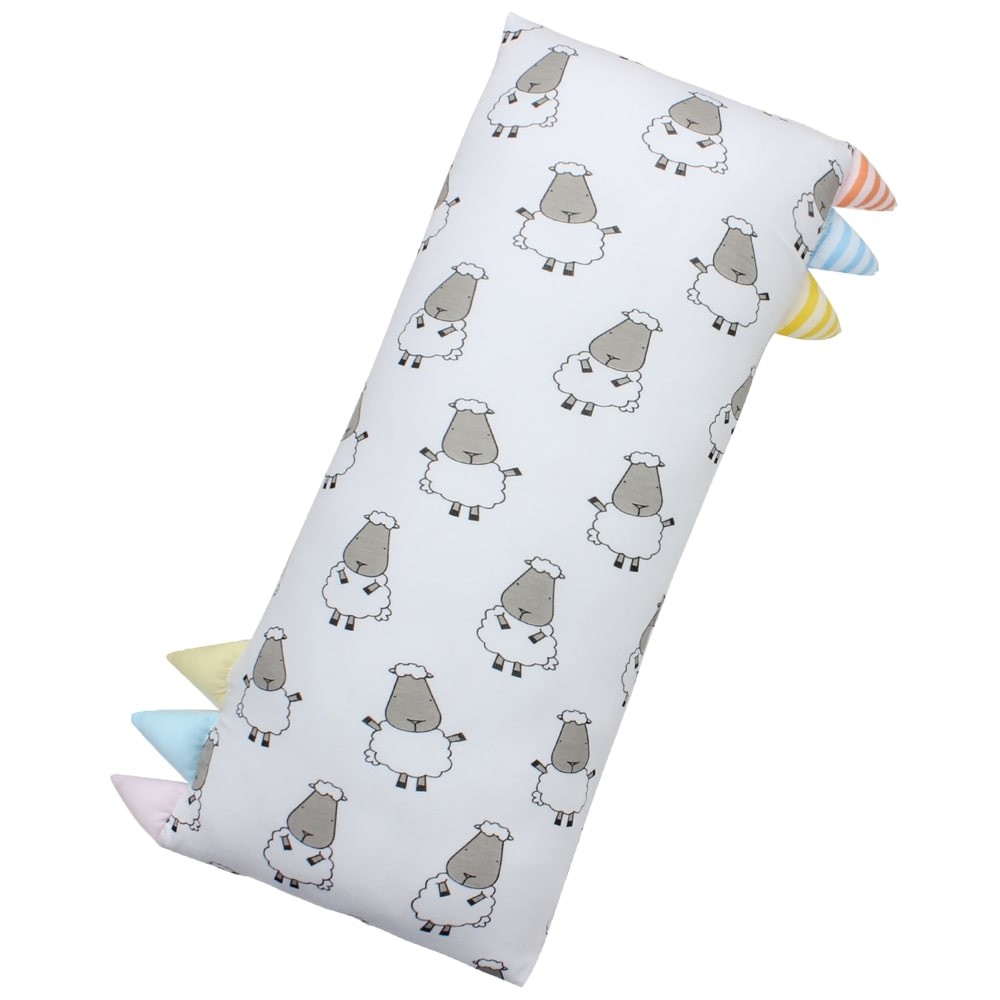 Baa Baa Sheepz Bed-Time Buddy Jumbo Pillow is a jumbo sized long pillow with fabric tags at the sides for baby to pull and bite on. This pillow is great as a sleep soother, baby's bed-time buddy, and even a sleep positioner.