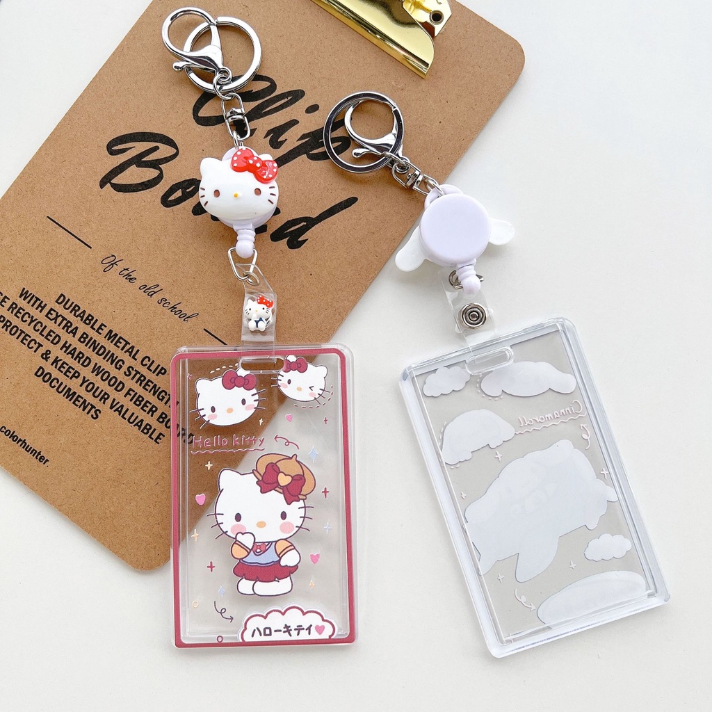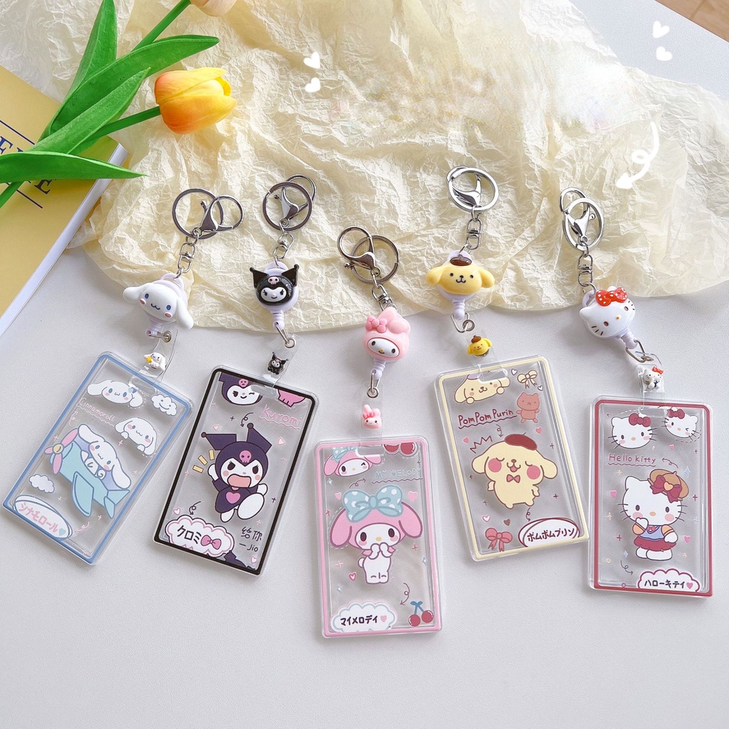 Sanrio Kuromi Transparent Card Holder Hard Case Slide Cover with Stretchable Hanging Chain ID Bank Card Photocard Protector
