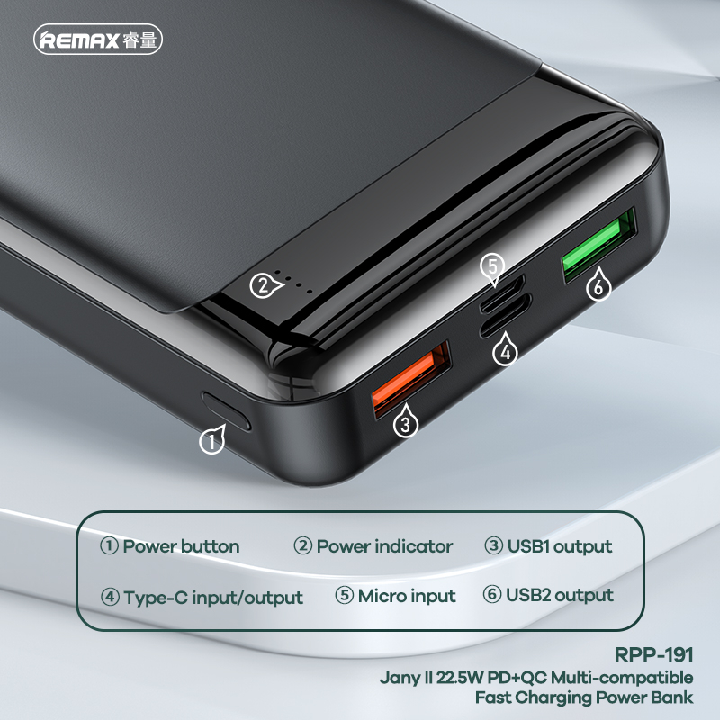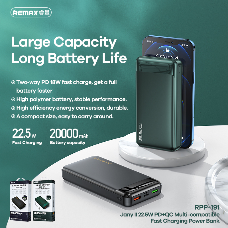 Remax Jany II 22.5W PD+QC Multi-compatible Fast Charging Power Bank RPP-191