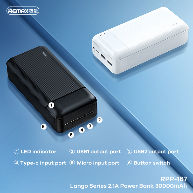 Remax 20W QC+PD Fast Charging Power bank 30000mAh RP-289 (Blue, White)