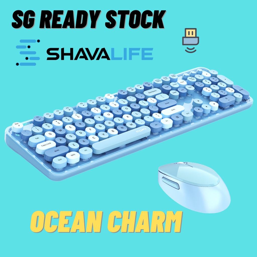 [Ready Stock SG] Wireless Keyboard Mouse Combo Vintage Round Keycaps