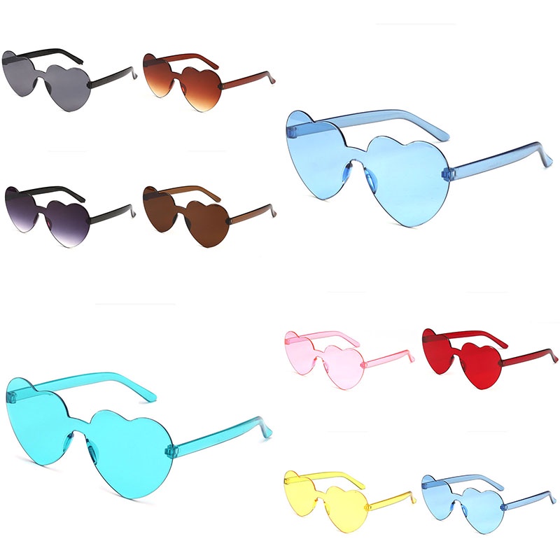 Love Heart Shape Sunglasses Women Rimless Frame Tint Clear Lens Colorful Sun Glasses Female Red Pink Yellow Shades Travel