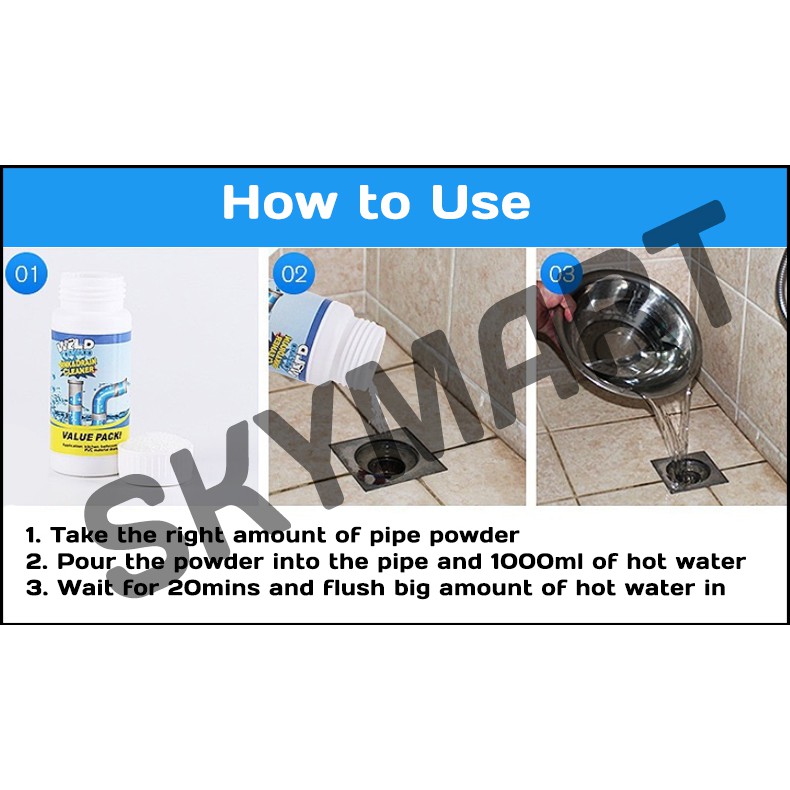 1. Open The Bottle of Sink Cleaner. According to the degree of clogging, take a proper amount of Cleaning powder and pour the powder into the pipe.