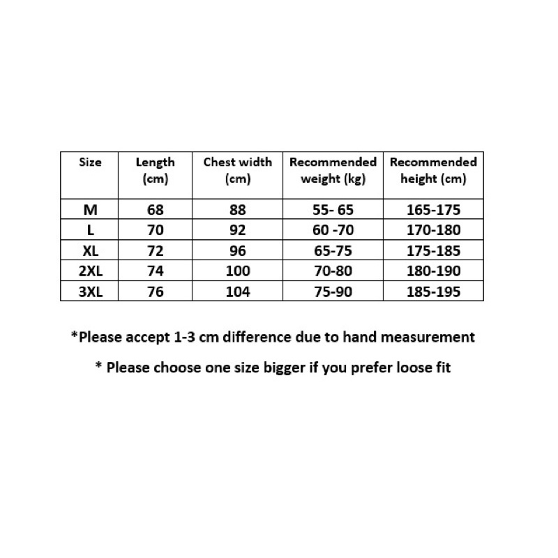 Size: M / L / XL / XXL /XXXL (Please refer to the size chart in Picture Description)