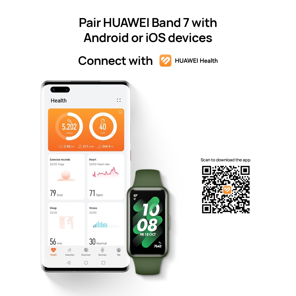 • 【Handy life assistant】: HUAWEI Band 7 keeps you plugged in to your life, View incoming calls and messages, quick reply of messages, get weather updates, control your music, plus take photos through your phone’s camera, all from the comfort of your own wrist.