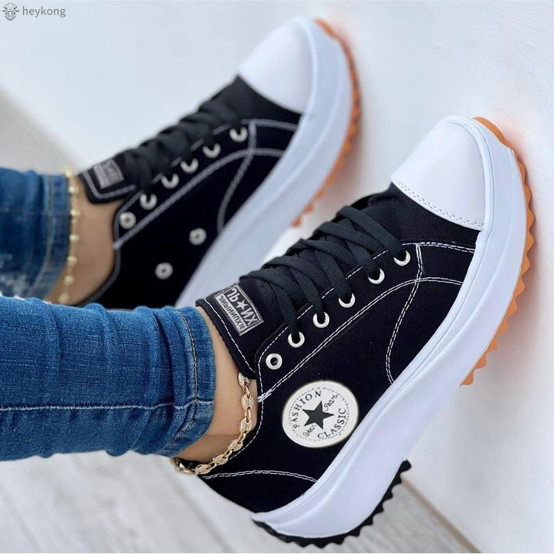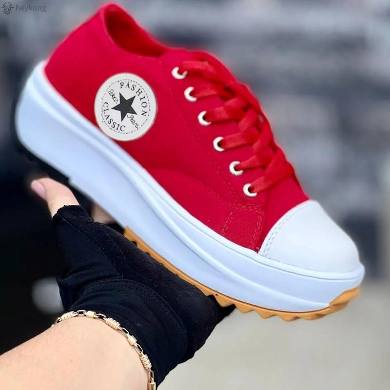 Canvas Shoes Fashion Sneakers Large Size Low Top Thick Sole Shoes for Women