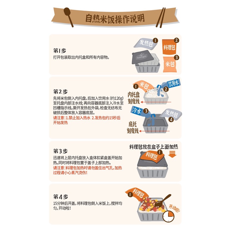 02) Place self-heating pack into the outer container and submerge it with room temperature water