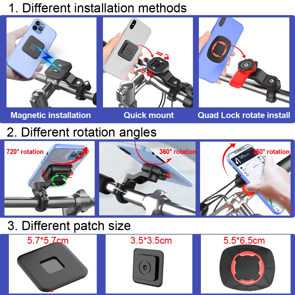 Gently press the button "Press" to take out the phone, and gently put down the phone to fix it, Convenient installation, fast fix or remove mobile phone in seconds, to ensure that you will not miss any calls or text messages while riding.