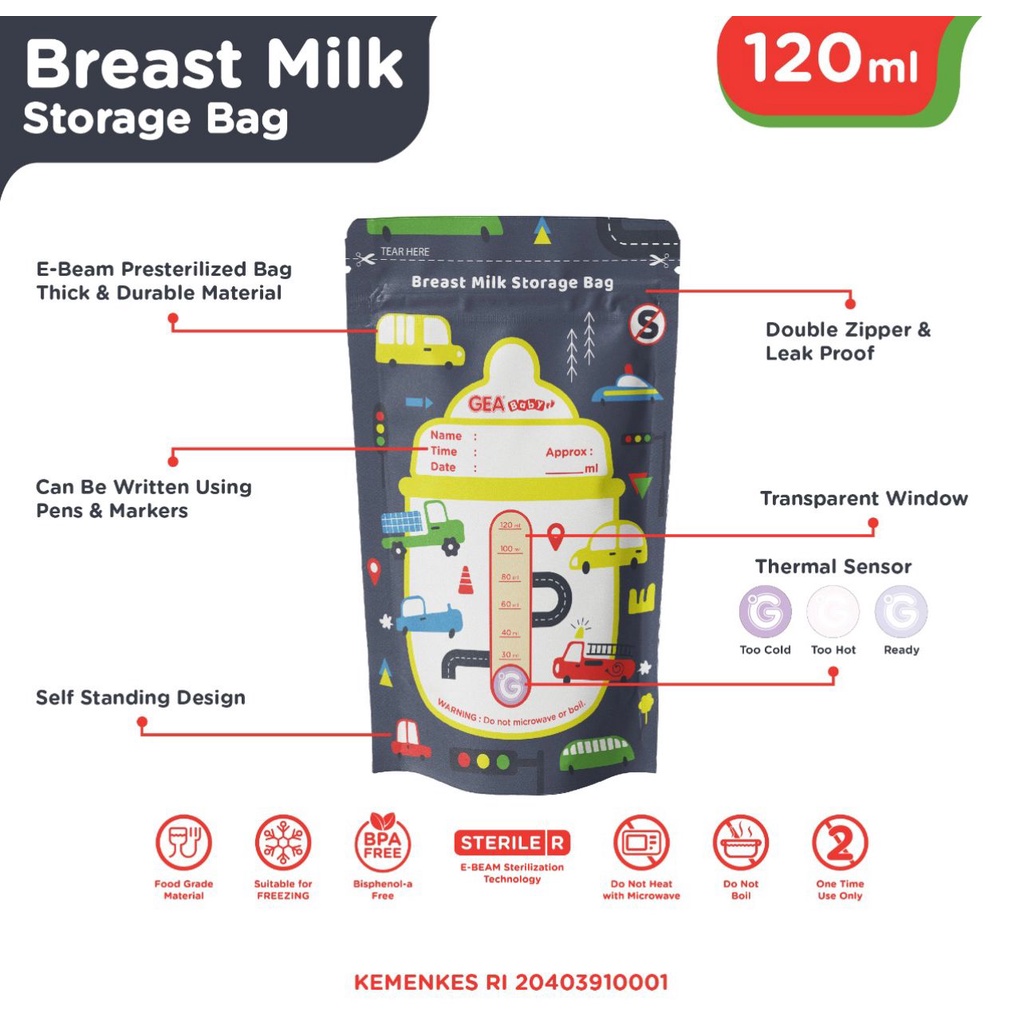 [Ready in SG] GEA BABY Breast Milk Storage Bags with Heat Sensor 120ml
