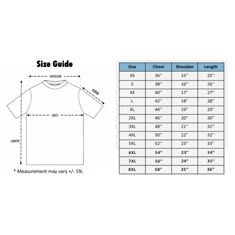 Size: S /M / L / XL / 2XL / 3XL / 4XL / 5XL / 6XL / 7XL / 8XL
