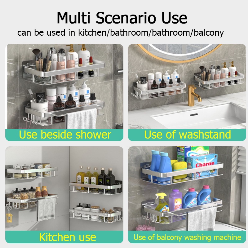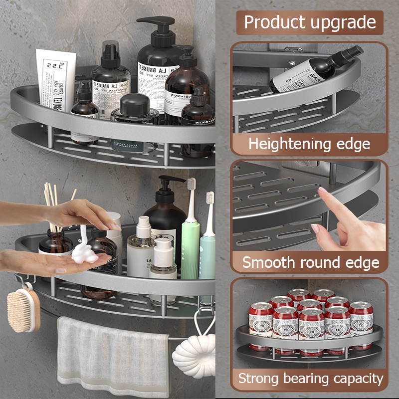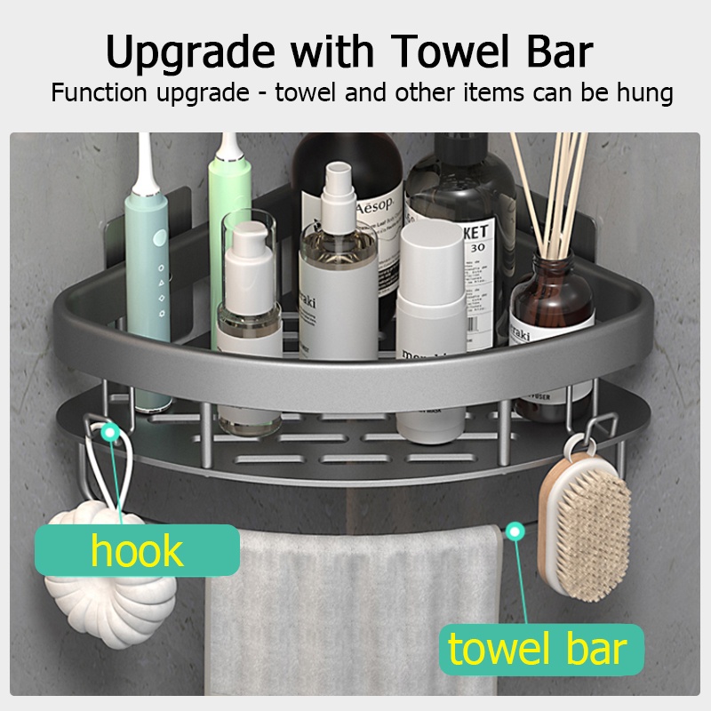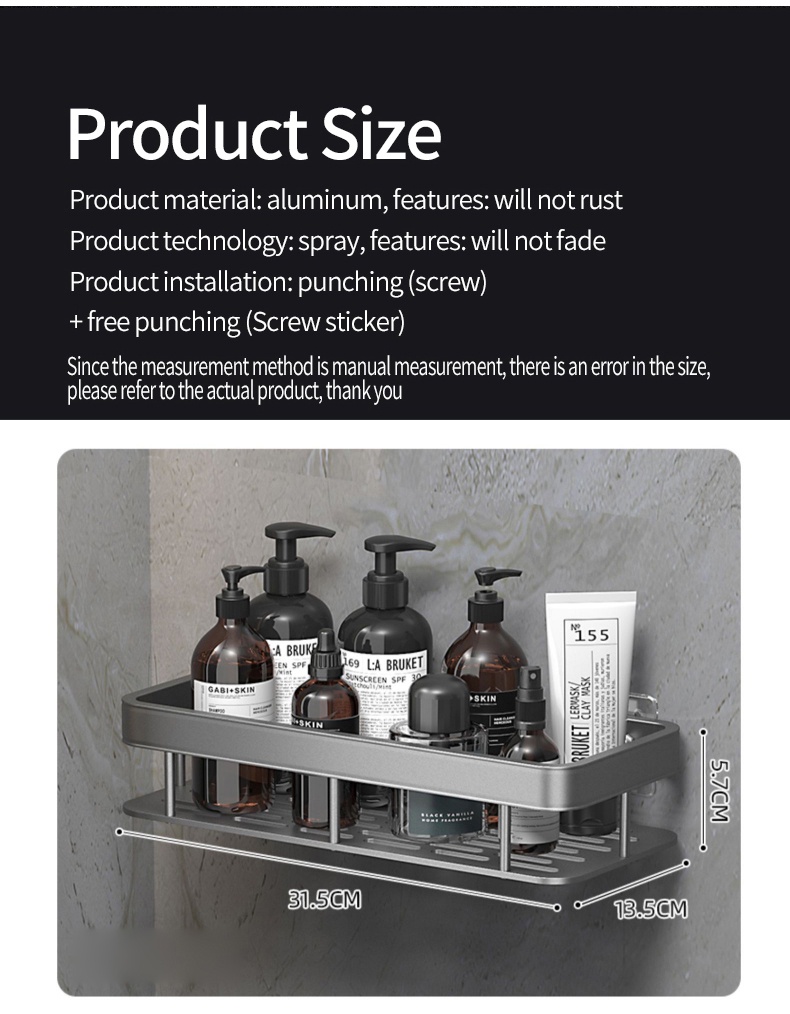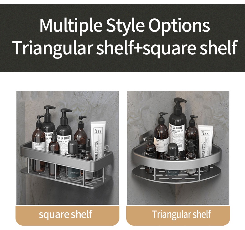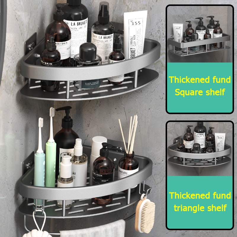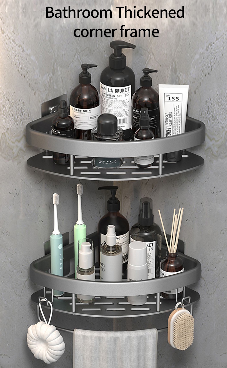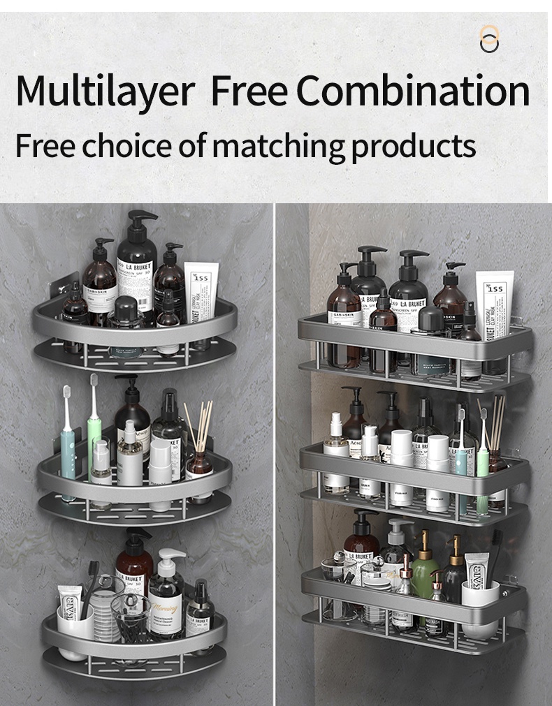 YUN JIE YA Free Punch Aluminium Bathroom Toilet Storage Rack Hanger Corner Shelf Organizer Wall Mounted Shower Shelving Home Accessories