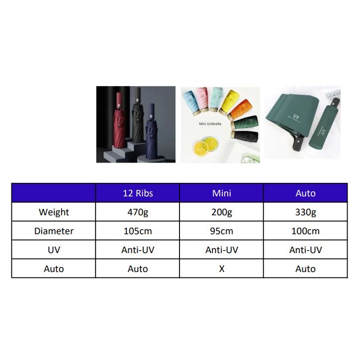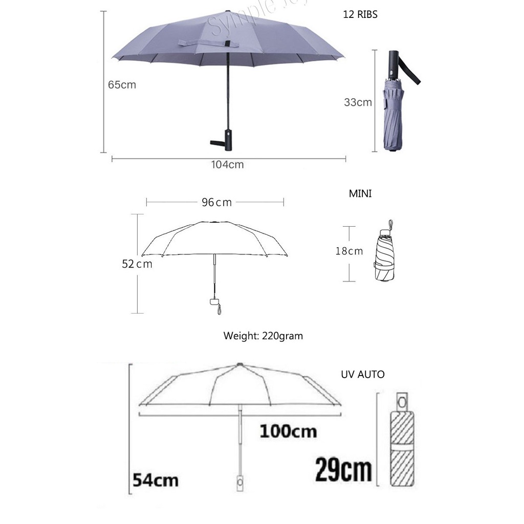 12 RIBS AUTOMATIC UMBRELLA | LARGE UMBRELLA | WINDPROOF | MINI | UV
