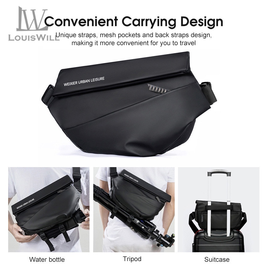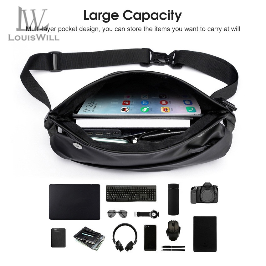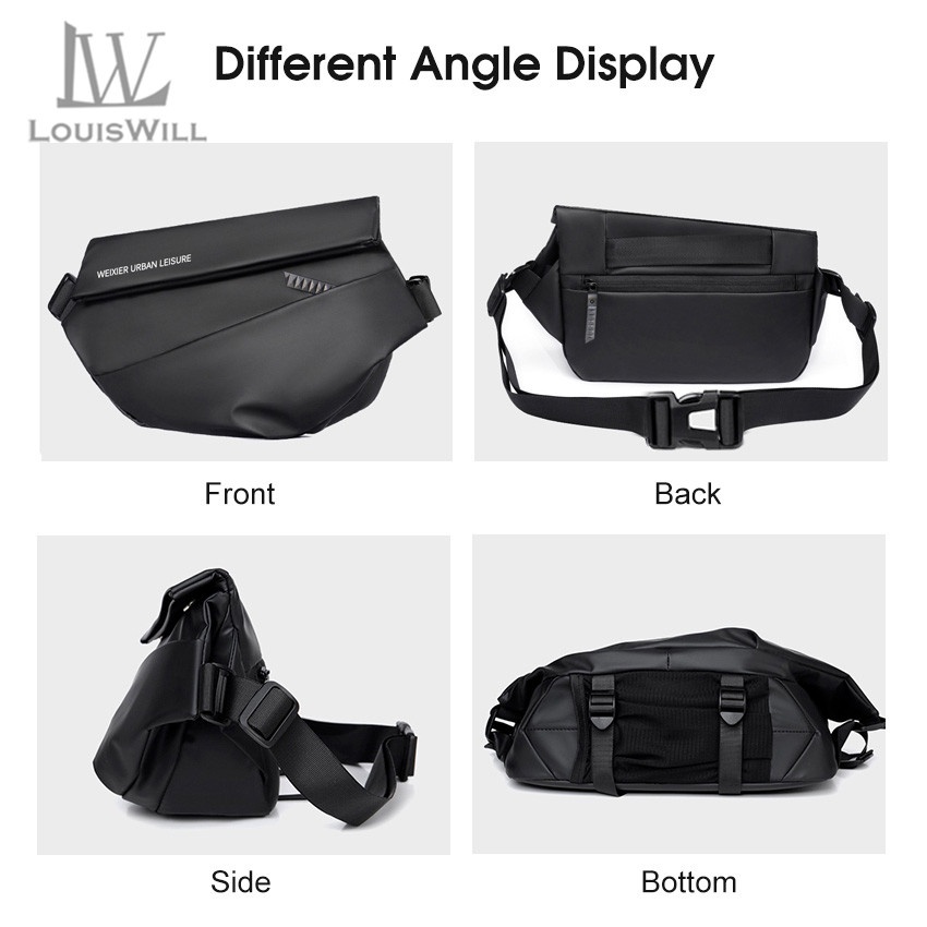 Louiswill Men Bag Chest Bag Crossbody Bag Magnetic Buckle Zipper Bag Sports Bag Waterproof Anti-Thief Sling Bag Street Shoulder Bag Messenger Bag Versatile Fashion Chest Bag Portable Travel Bag Work B