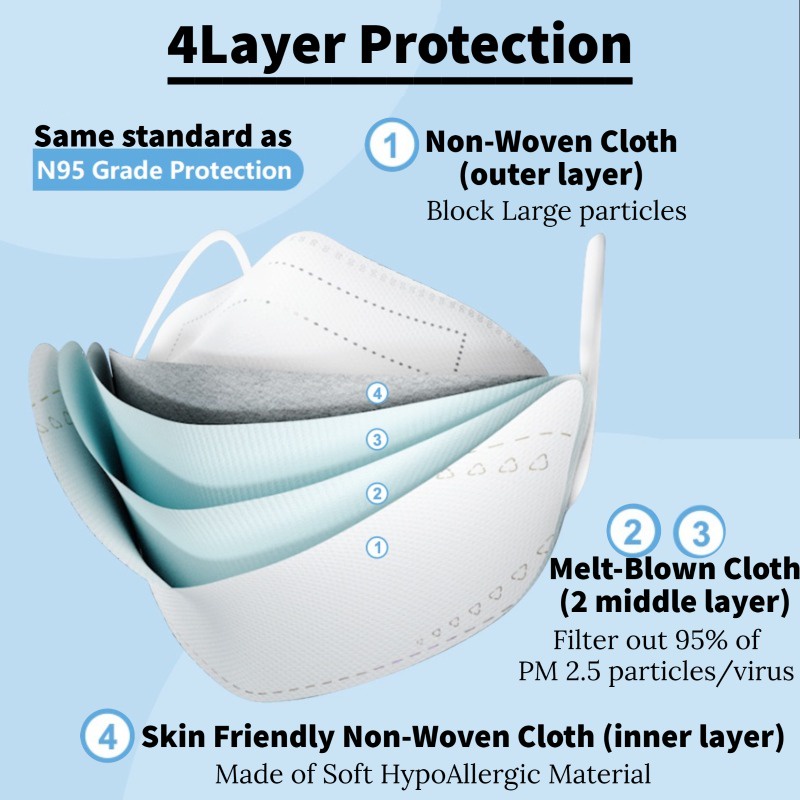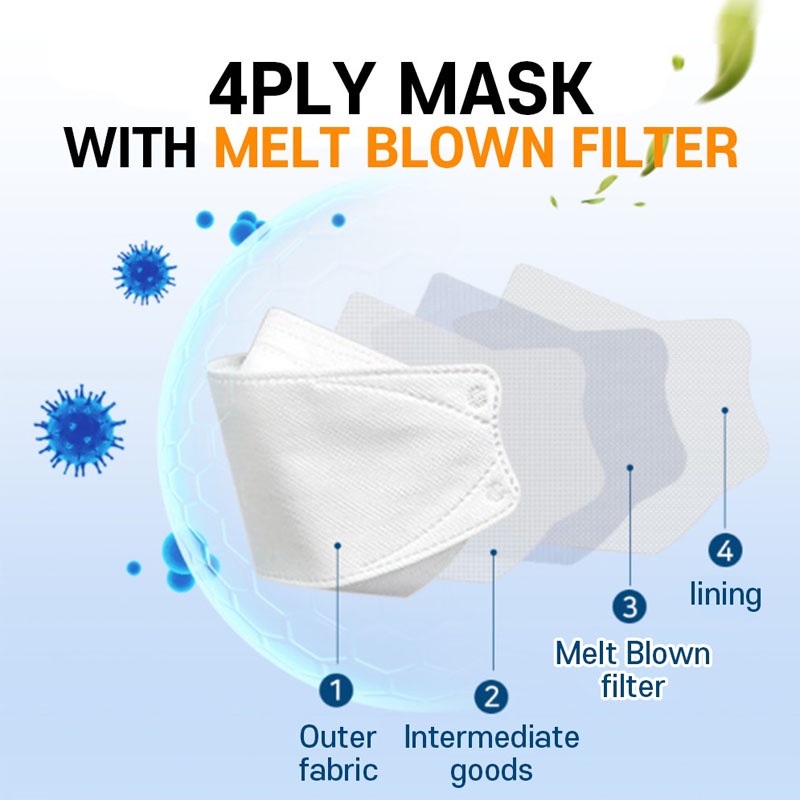 50pcs Bundle Pack KF*94 3D Fish Mouth Mask DisposableMASK 4-ply Mask