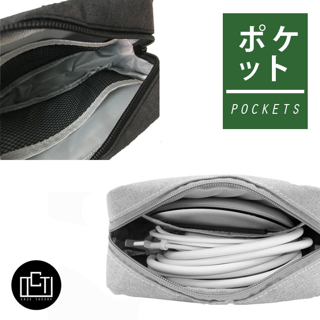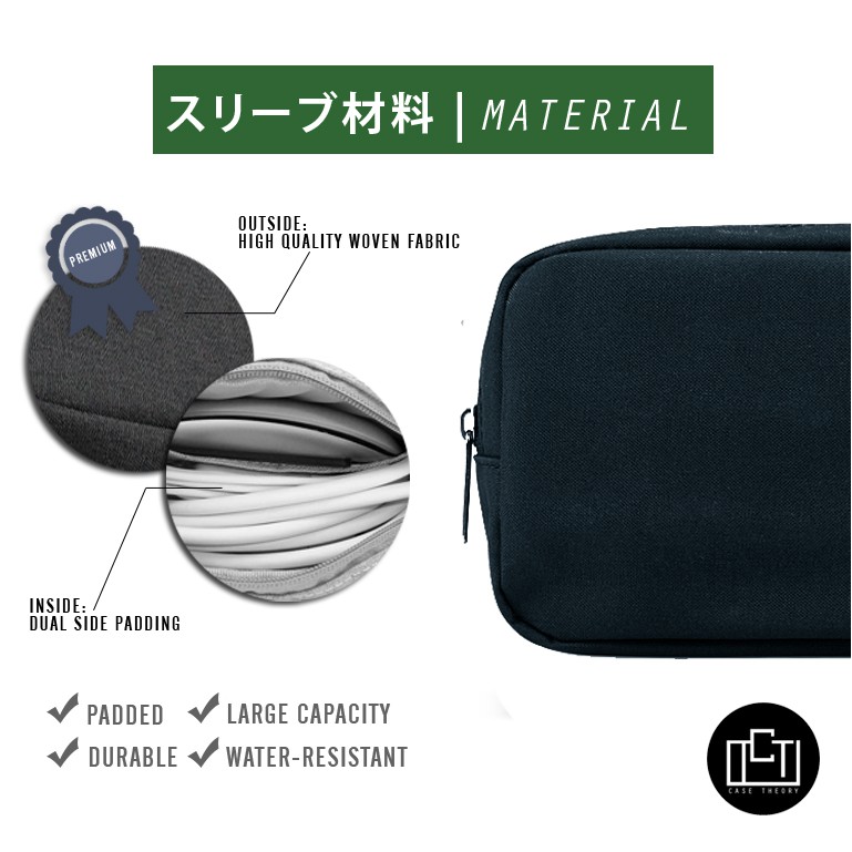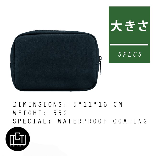 ?caseTheory? brand new series. All new material with water resistant lining! Able to store most laptop (Asus, Acer, Apple, Dell, HP, etc) chargers plus extra cables and accessories. Able to use as a pencil case too, fits pens and pencils well. Want to use as a makeup pouch? Perfect size too!