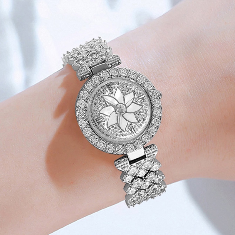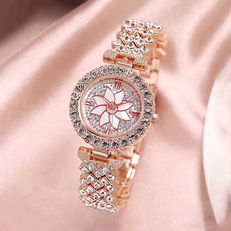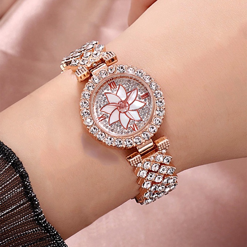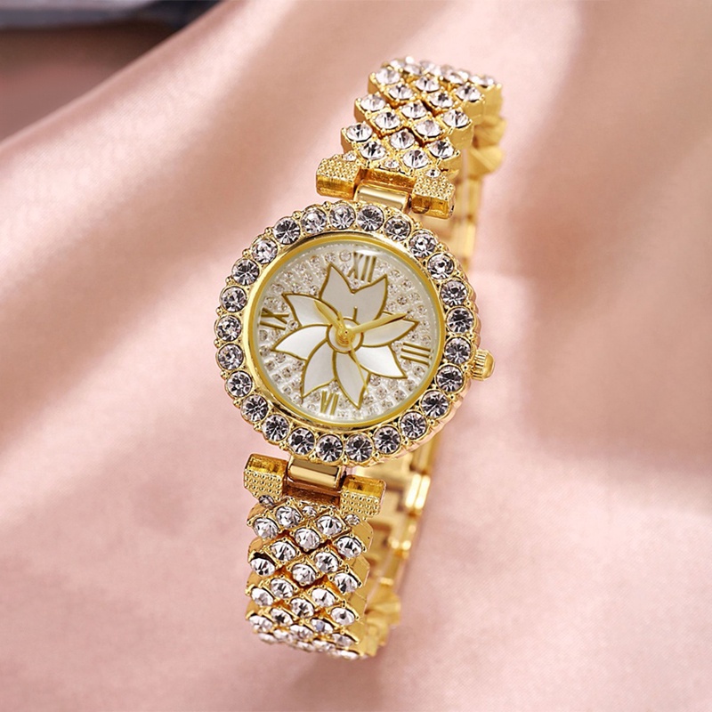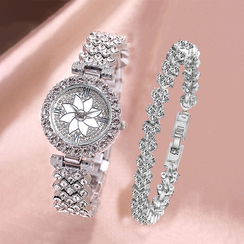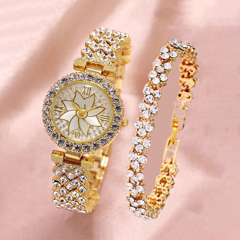 2PCS jam tangan+gelang wanita Women Fashion Rhinestone Bracelet Quartz Watch Set