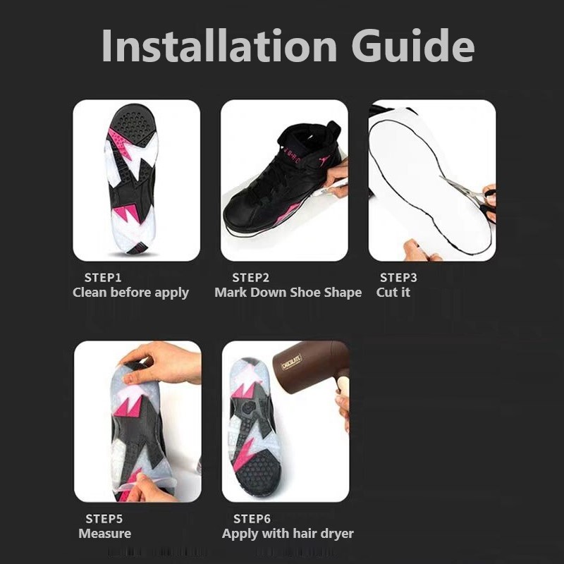 -Easy to use, just peel off and place the Sole Protector on the sole and press firmly , using Heat Gun or Hair Dryer.