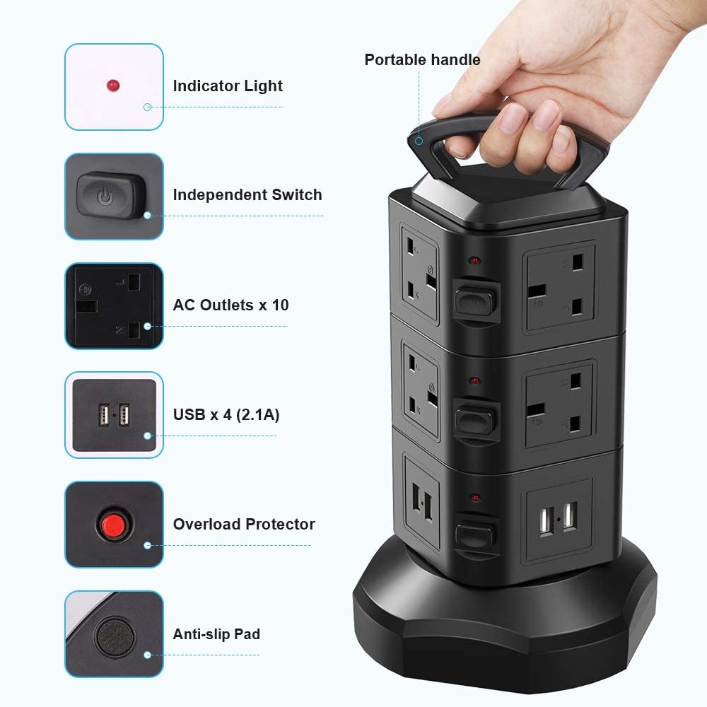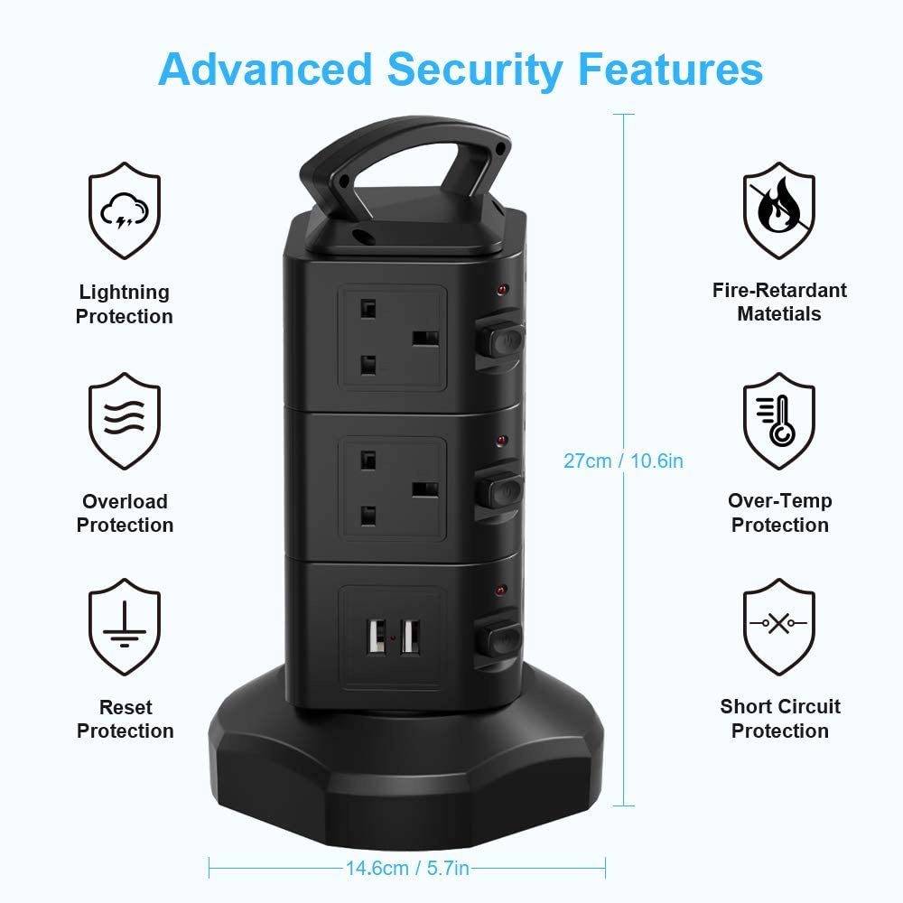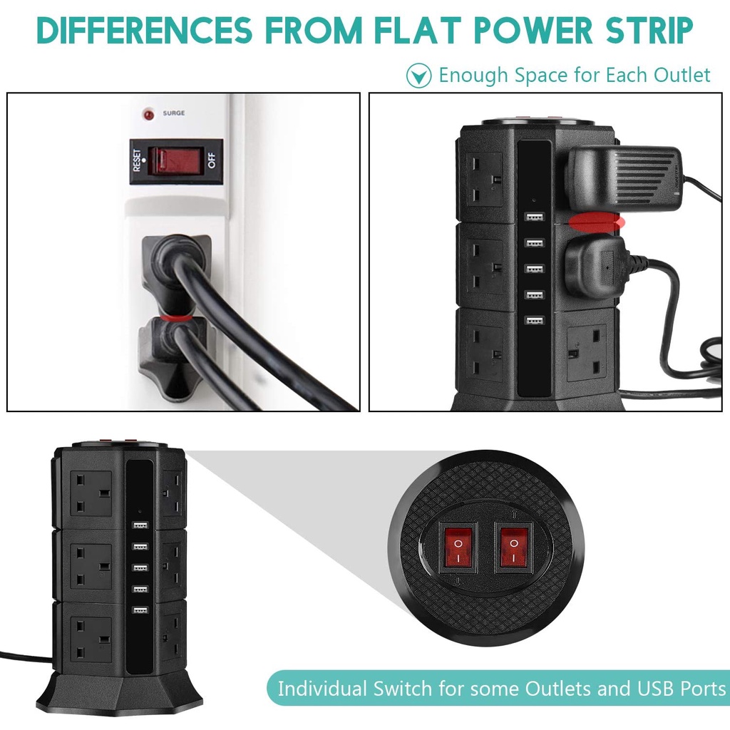 Charging Ports: 12 UK-standard AC outlet & 5 USB Ports