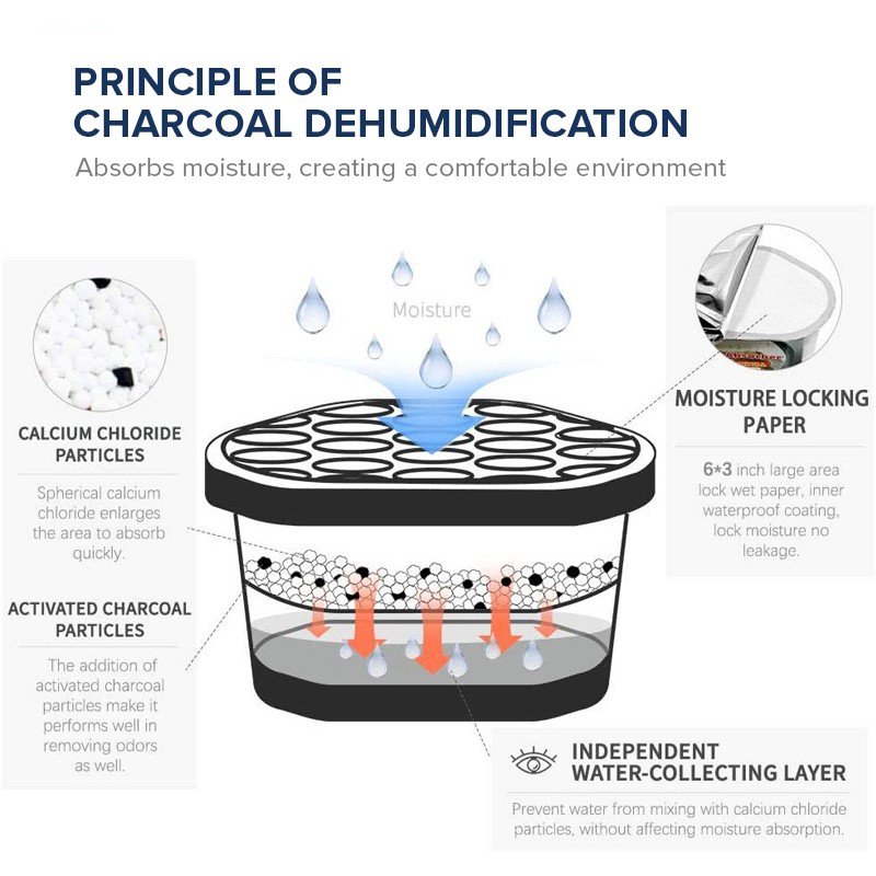 Charcoal Dehumidifier Box Home Living Moisture Absorbing Drawer Wardrobe Mildew Mold Proof Odor Elimination 550ml Agents