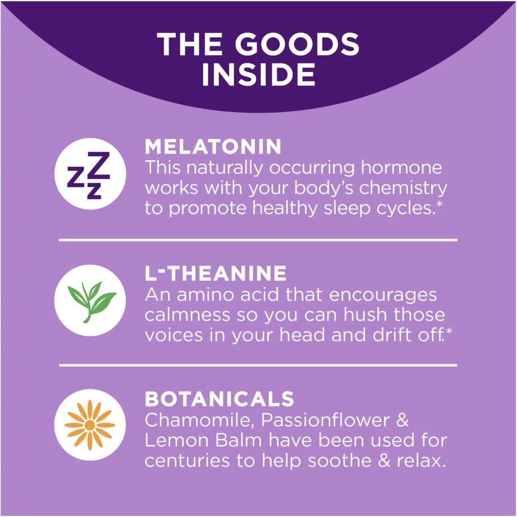 ✨Features 3mg of Melatonin, 100mg L-Theanine, Botanicals like Chamomile, Passionflower & Lemon Balm