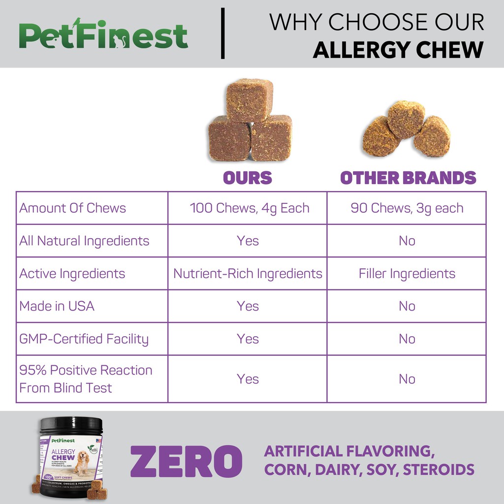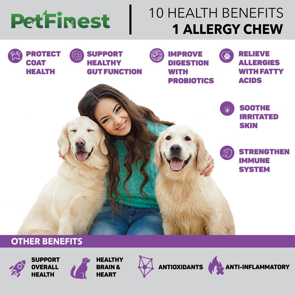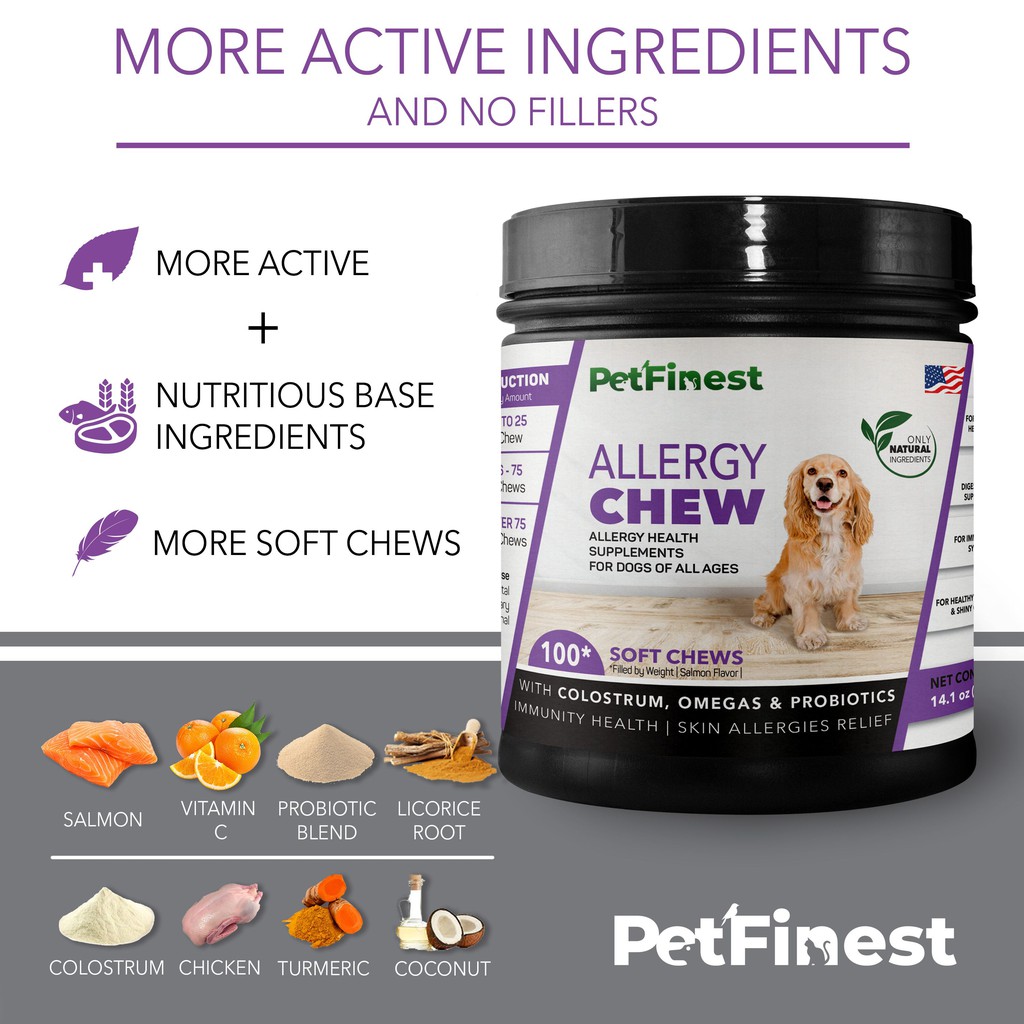 Petfinest Allergy Chew Relief Immune Pet Dog Vitamin Supplement - Skin Itch Treatment (100 Soft Chew Treats)