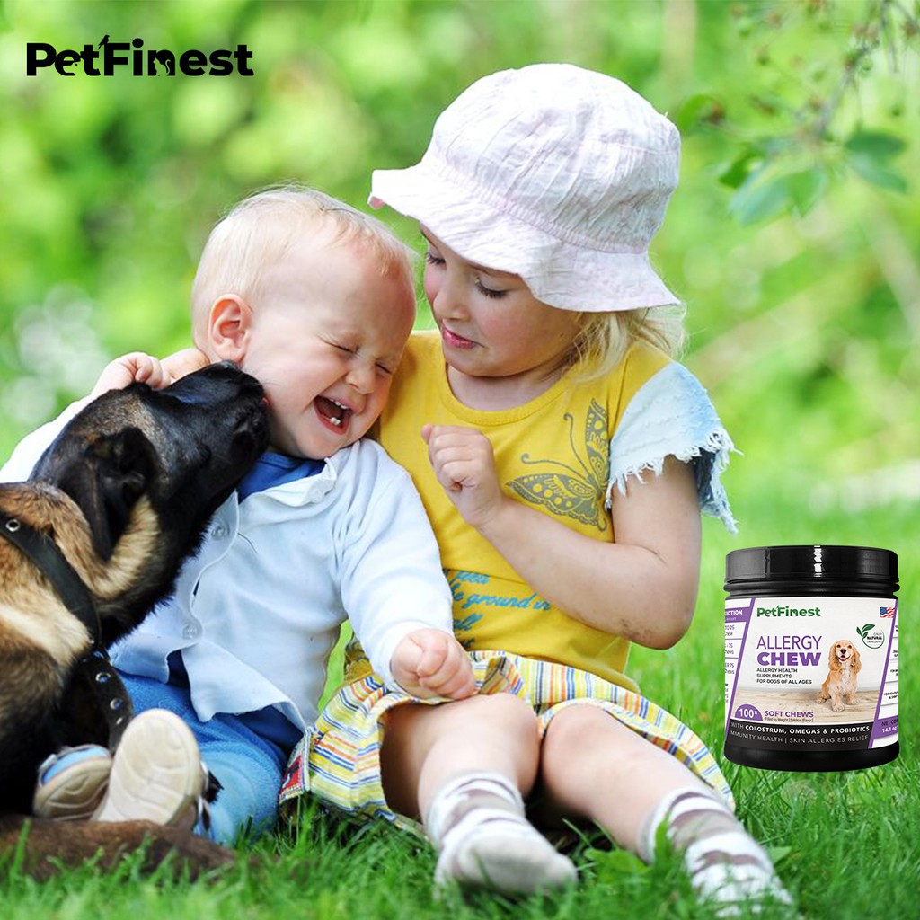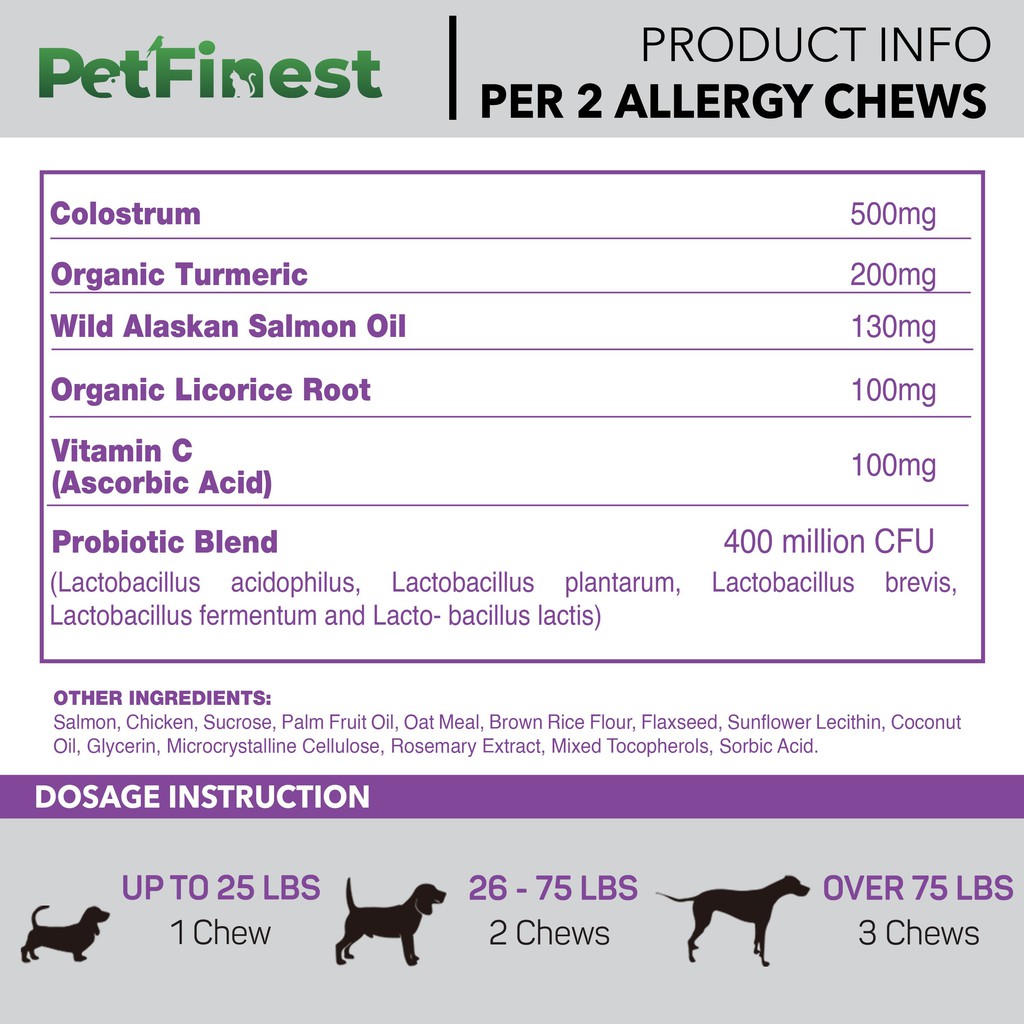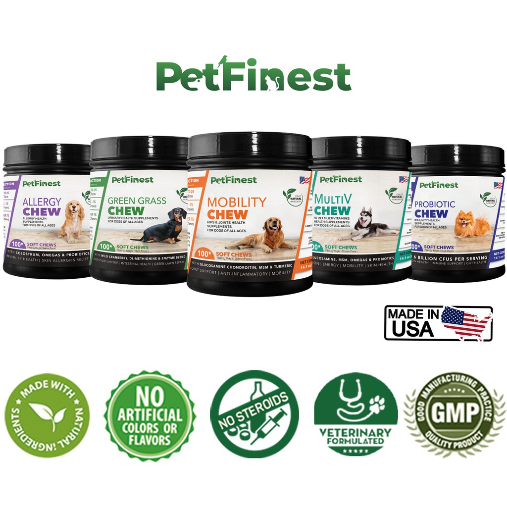 Petfinest Allergy Chew Relief Immune Pet Dog Vitamin Supplement - Skin Itch Treatment (100 Soft Chew Treats)
