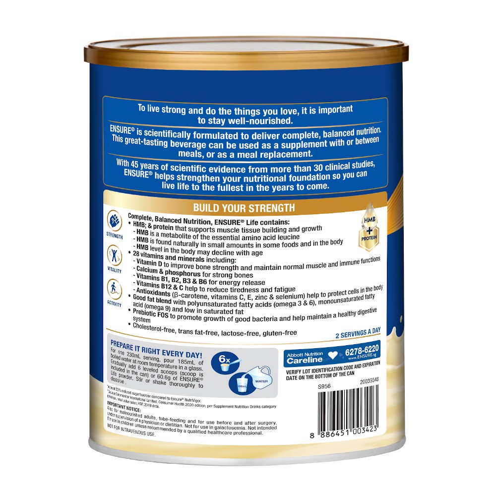 Ensure Life with adult nutrition has HMB with high-quality protein that supports muscle tissue building and growth